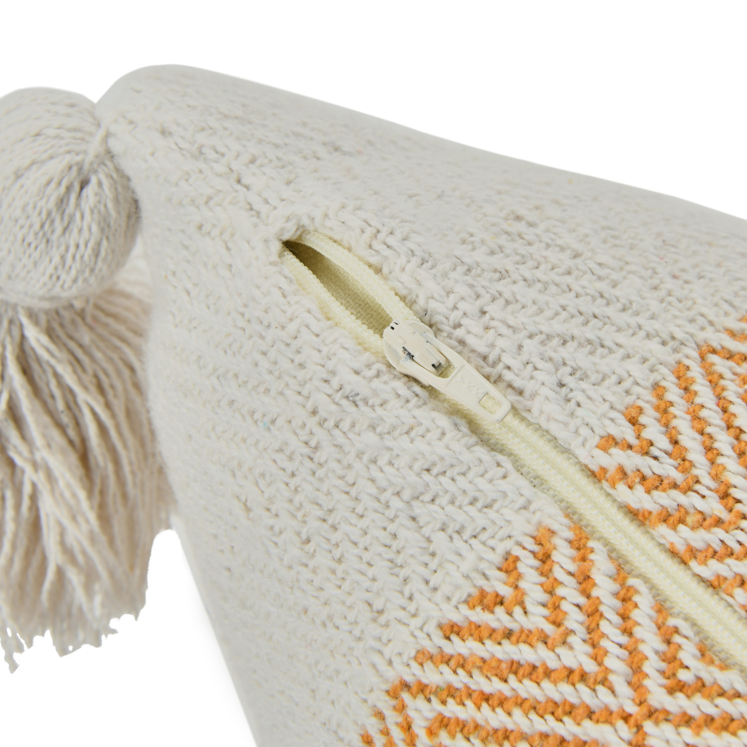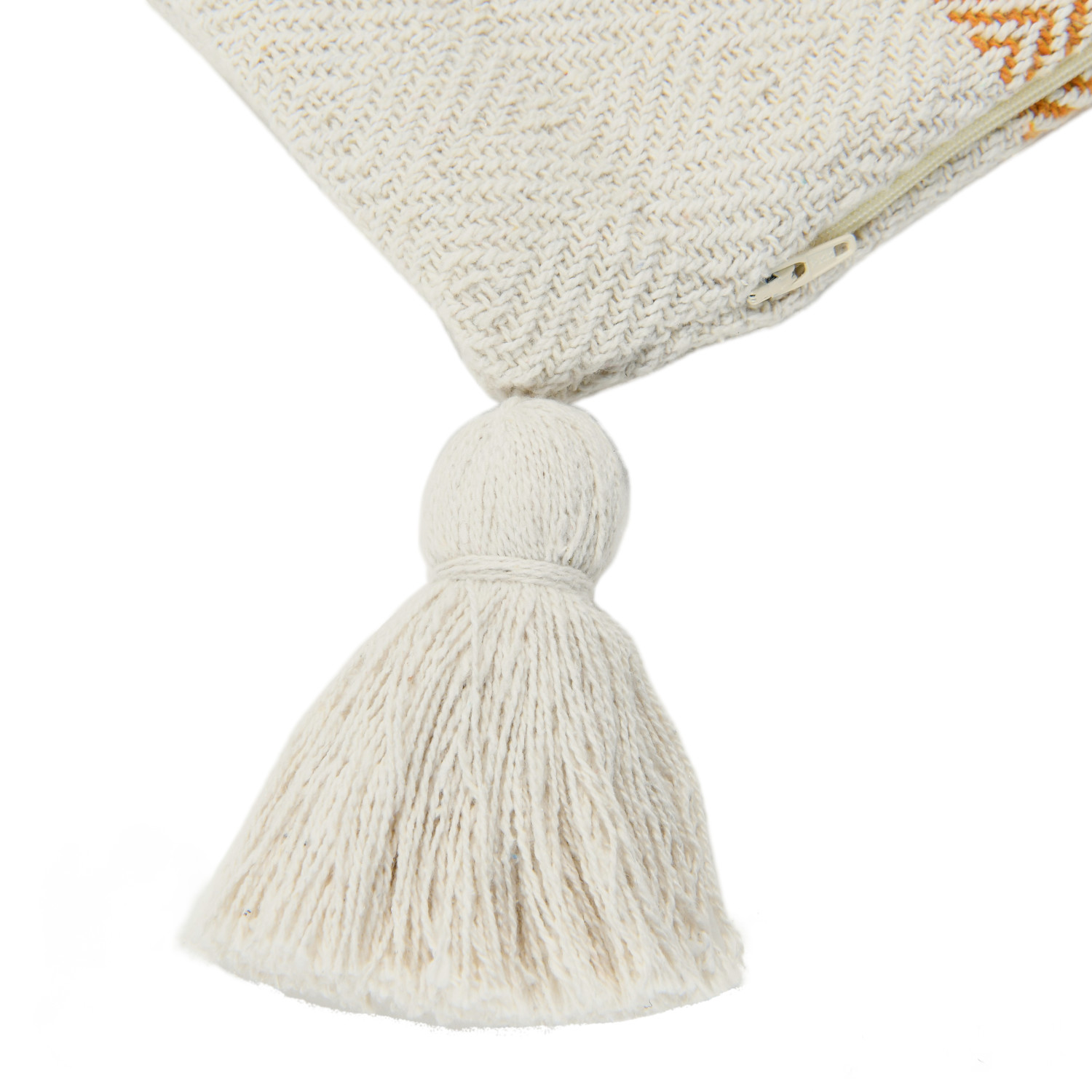 Yellow and Cream woven recycled cotton blend lumbar pillow with tassels; Cover: Poly-Cotton Blend; 24"L x 16"W x 2"H. Spot Clean Only.