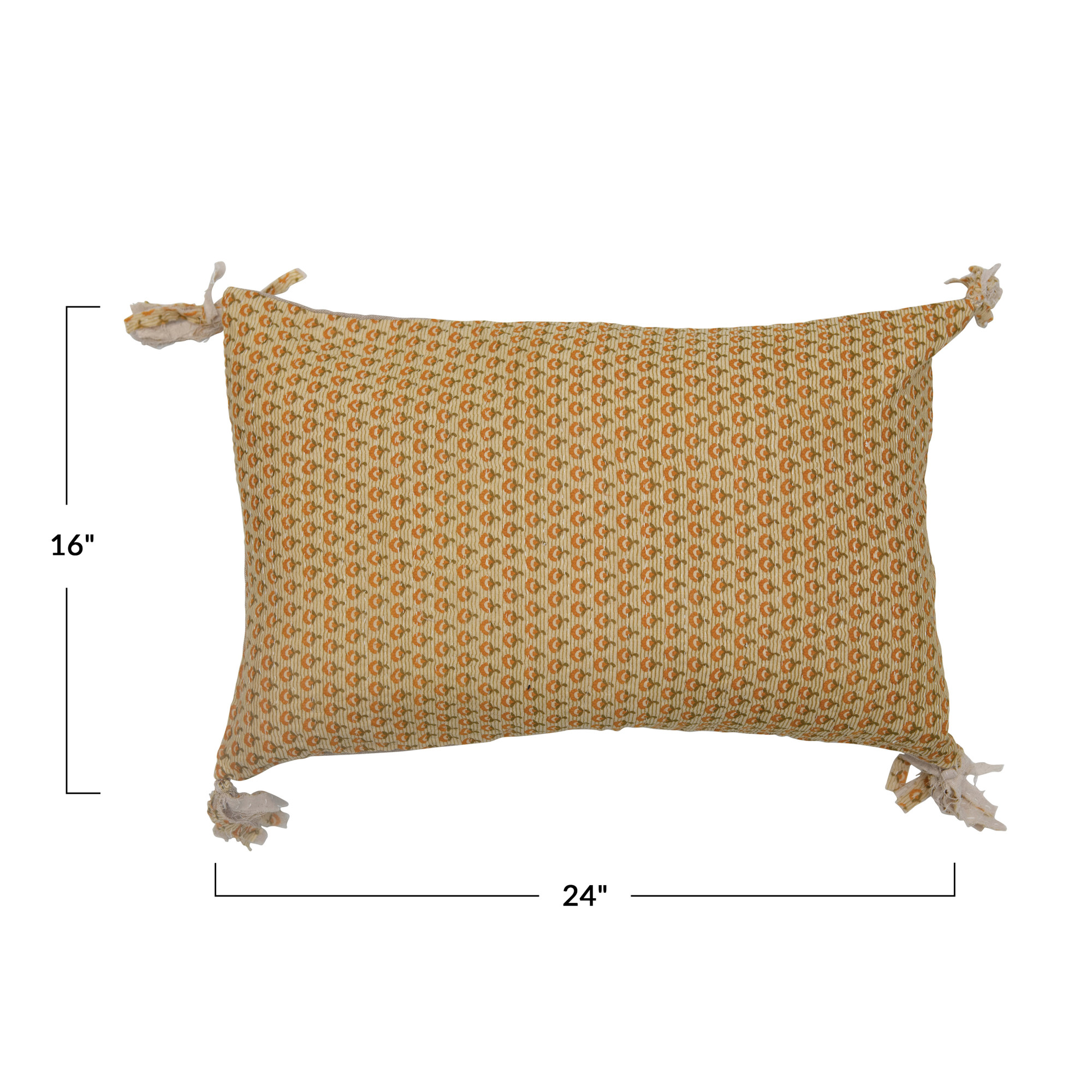 24" x 16" Cotton Printed Lumbar Pillow with Frayed Tassels