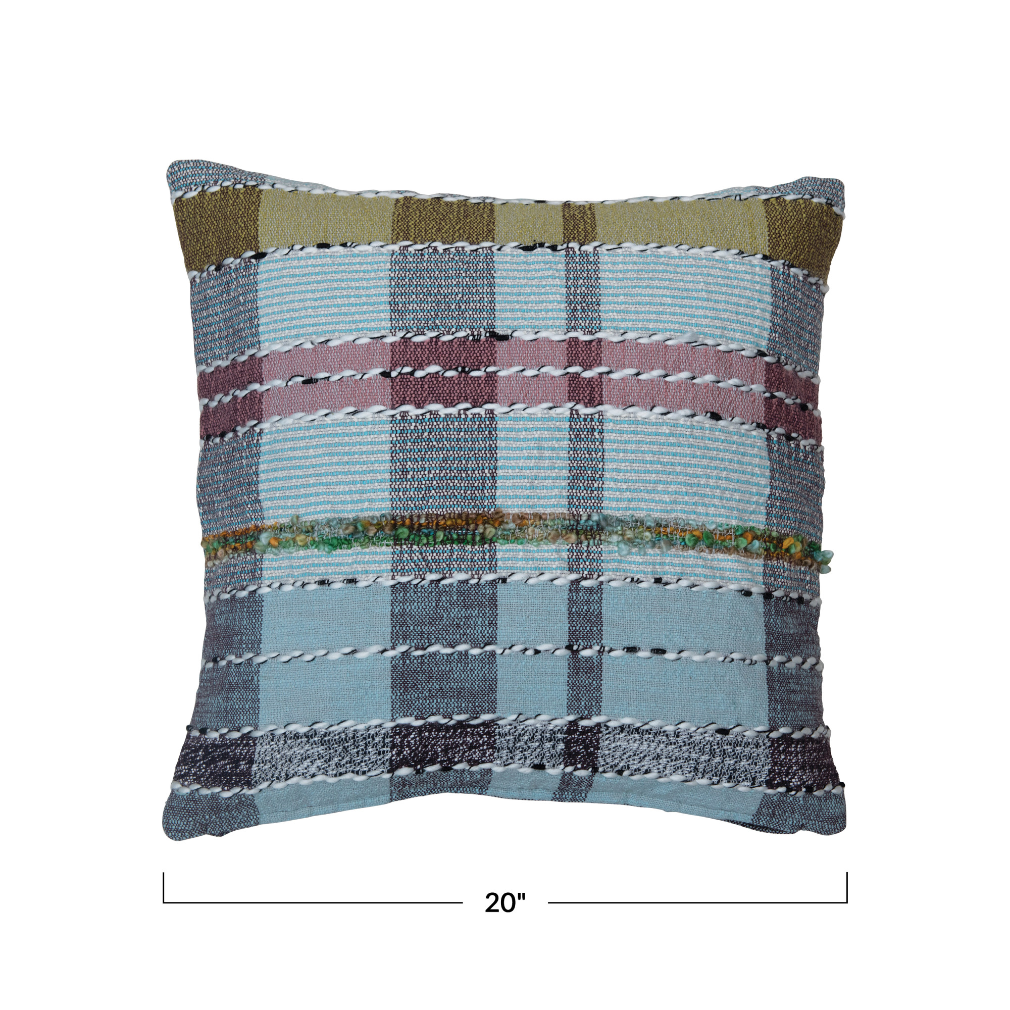 20" Woven Cotton & Wool Madras Plaid Pillow