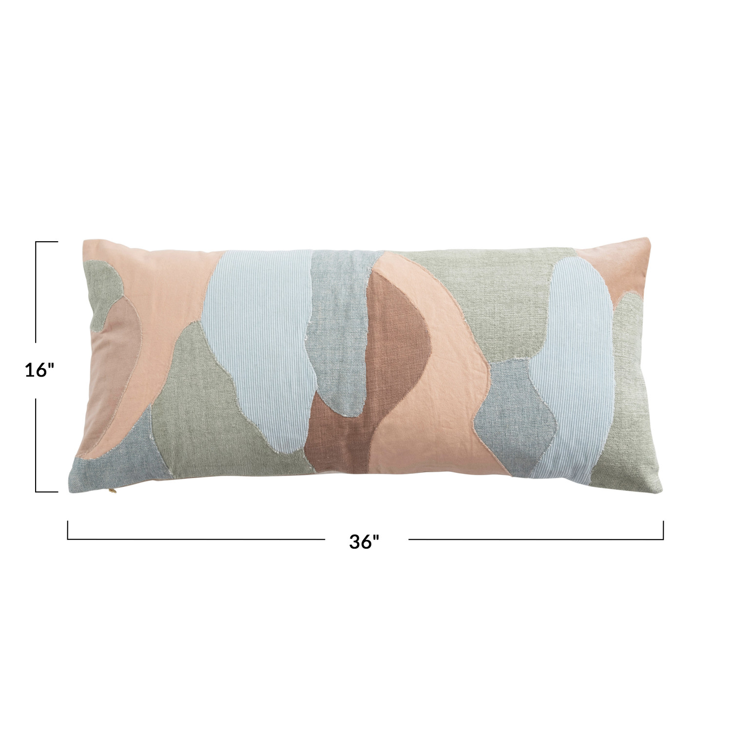 Catalog Name: 36"L x 16"H Cotton Blend Patchwork Lumbar Pillow, Multi Color