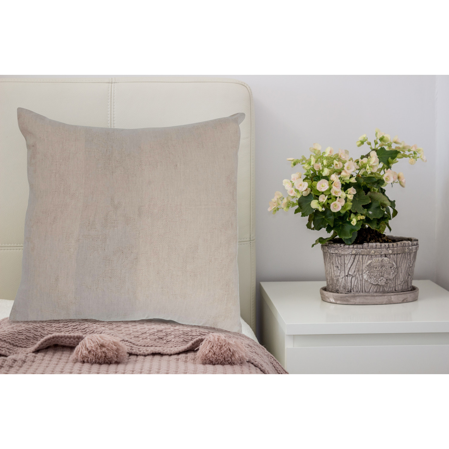 This elegant throw pillow features an intricately woven cotton jacquard construction. Square cream woven cotton jacquard throw pillow; Cream cotton encasement on back. Express your constantly evolving style with the simple addition of this eye-catching pillow. Removable cotton throw pillow cover and insert; Hidden in seam zipper closure; Machine wash cold, gentle cycle, do not bleach, warm iron if needed.