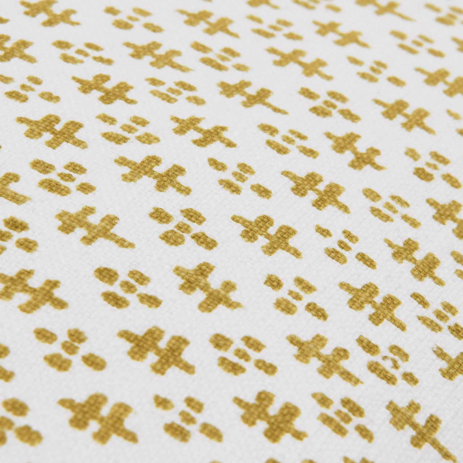 This playful cotton throw pillow cover features a delicate geometric print on soft woven cotton, finished with decorative tassels. Cream and mustard cotton throw pillow with geometric pattern and tassels; Cream cotton encasement on back. Express your constantly evolving style with the simple addition of this eye-catching pillow. Removable throw pillow cover with polyester insert; Hidden in seam zipper closure; 30 degree wash, do not bleach, tumble dry low, do not dry clean, medium iron.