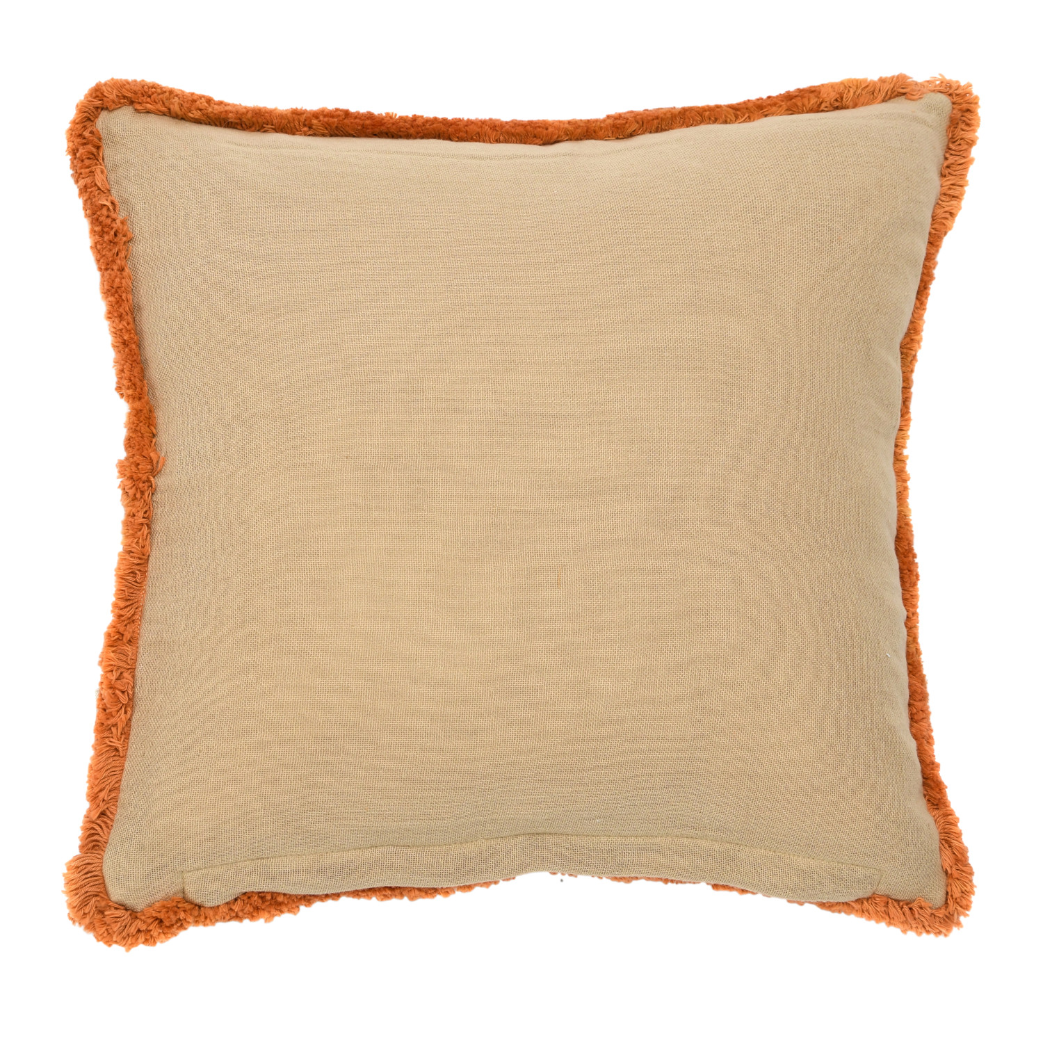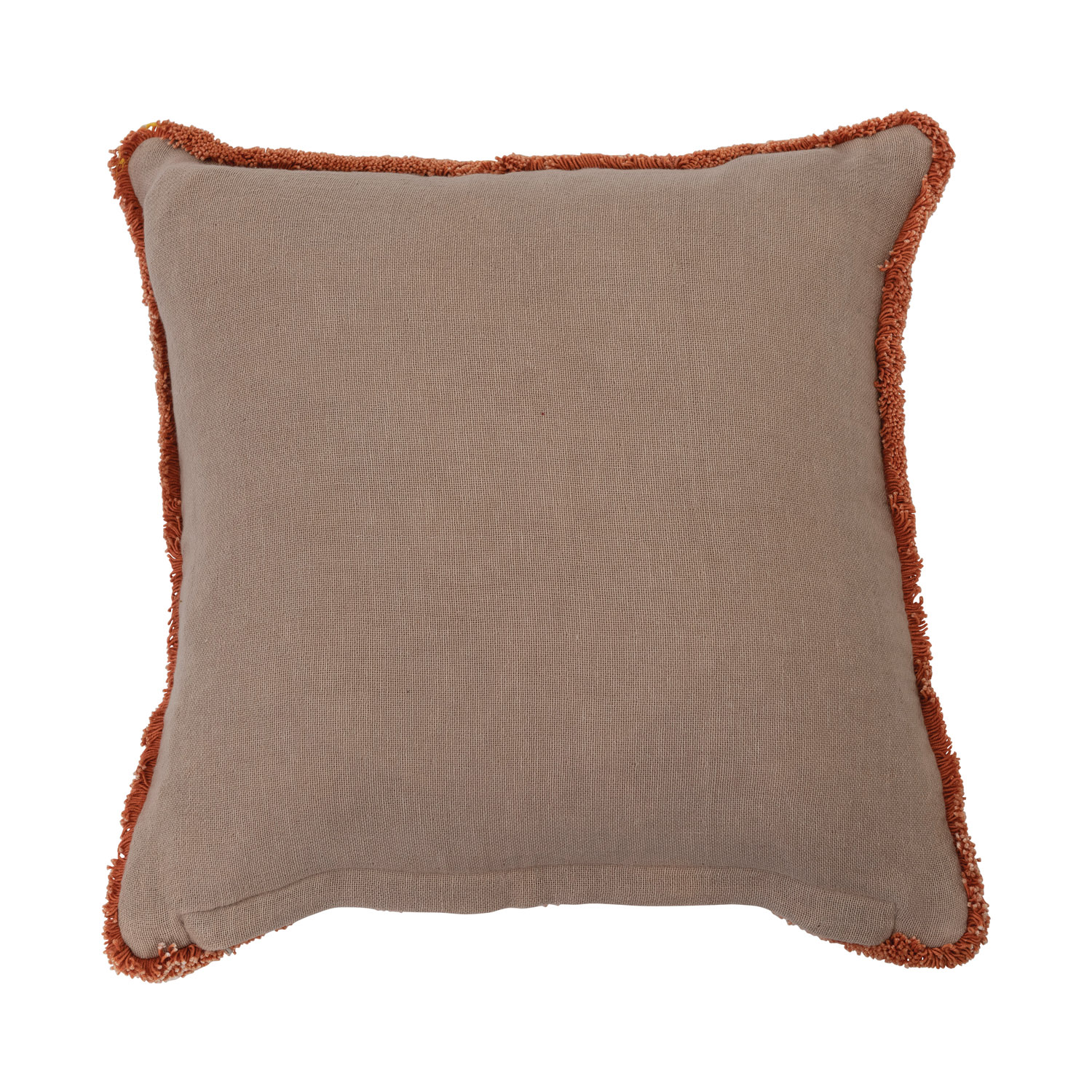 Catalog Name: 16" Square Cotton Pillow w/ Metallic Printed Floral Pattern & Eyelash Fringe, Multi Color