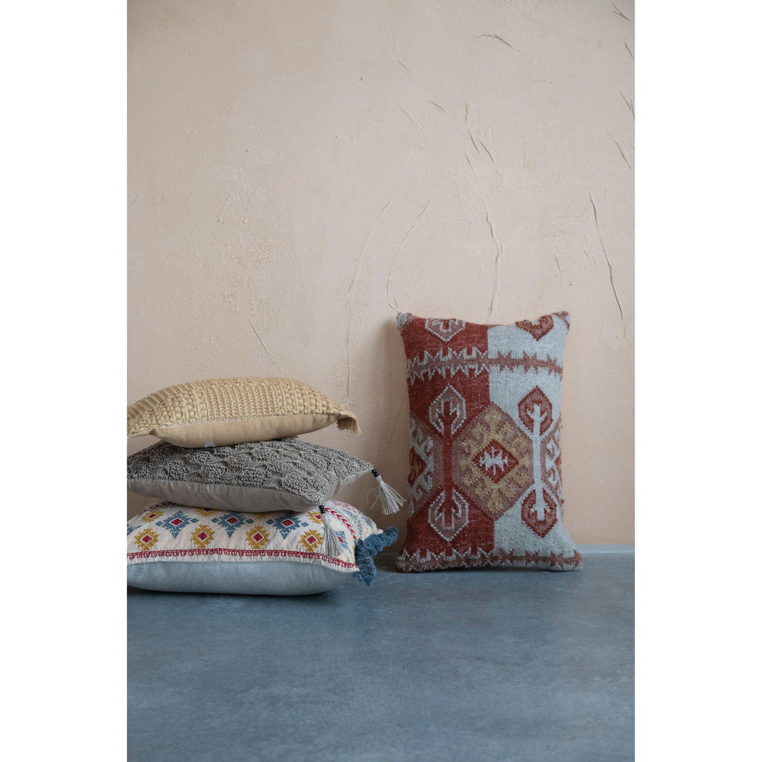 Catalog Name: 20"L x 12"H Cotton & Jute Macrame Lumbar Pillow w/ Jute Tassels & Mango Wood Beads, Brown