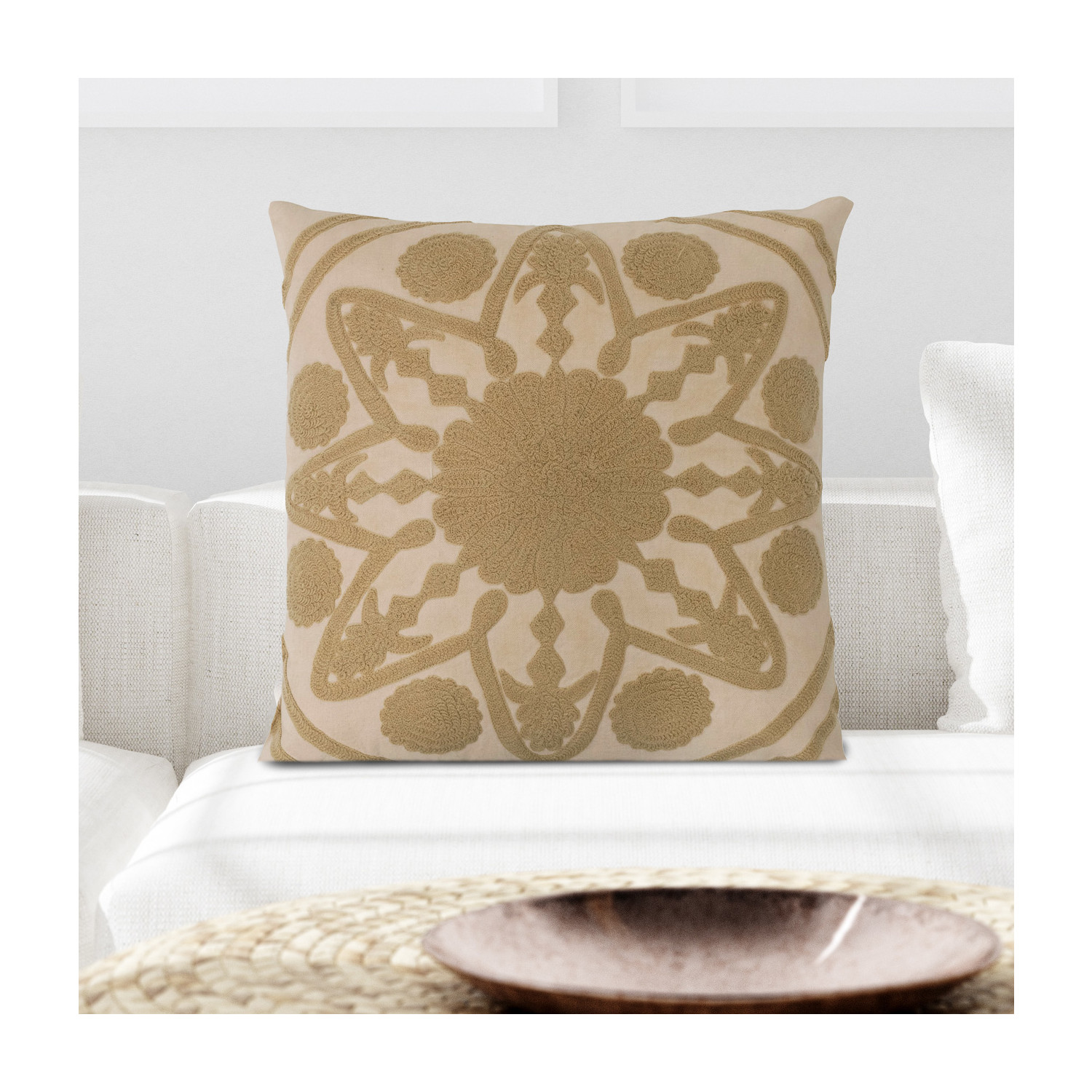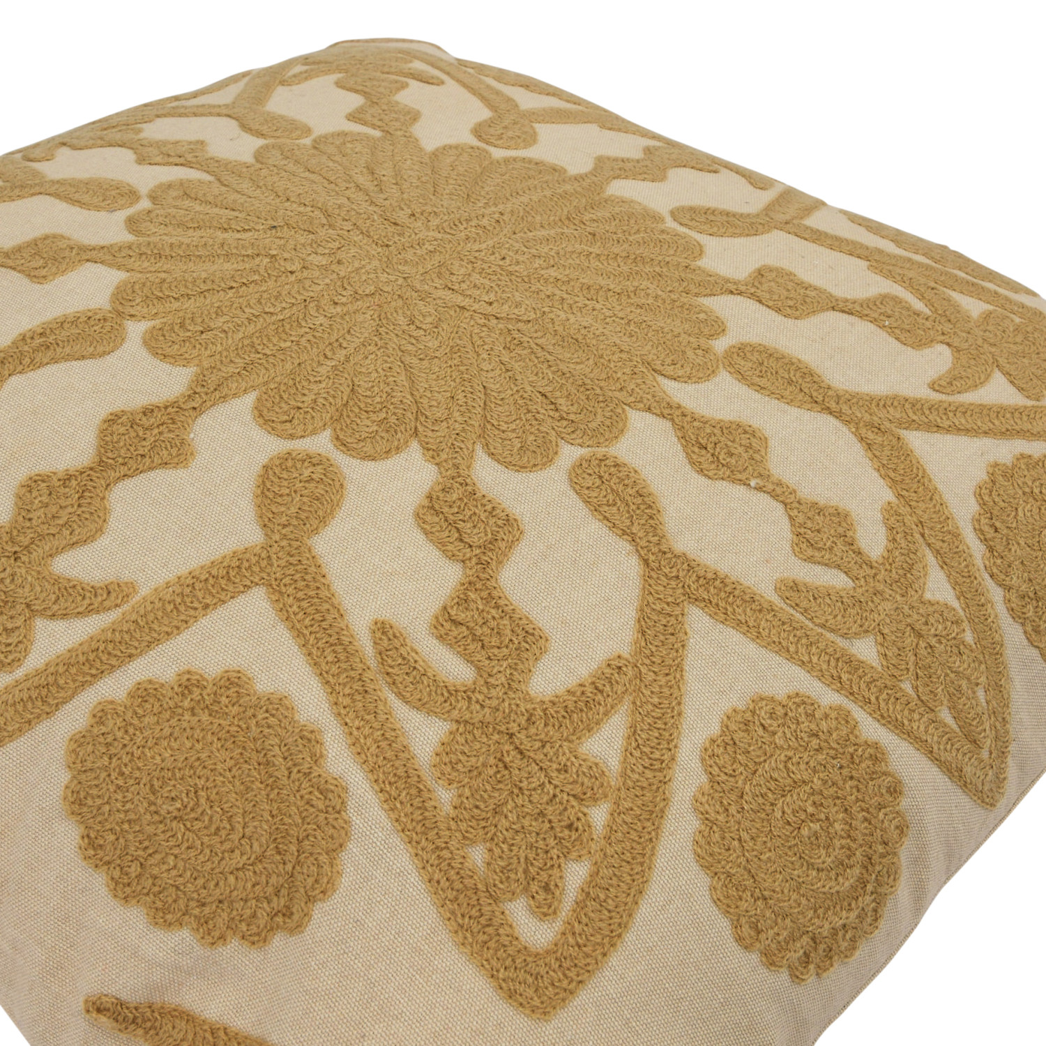 Catalog Name: 20" Square Cotton Pillow w/ Embroidered Design, Natural & Beige