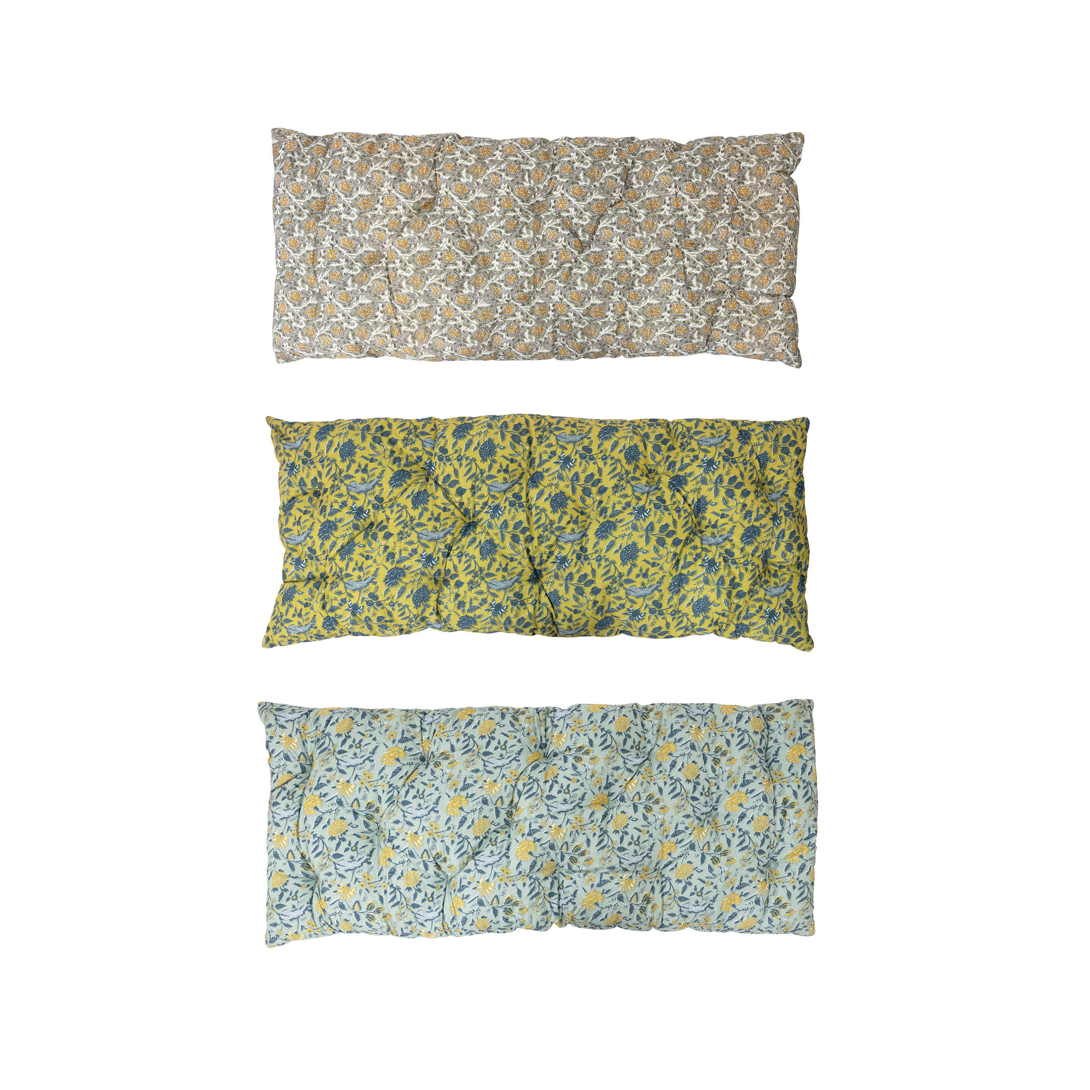 57" x 27" Cotton Tufted French Cushion with Floral Pattern
