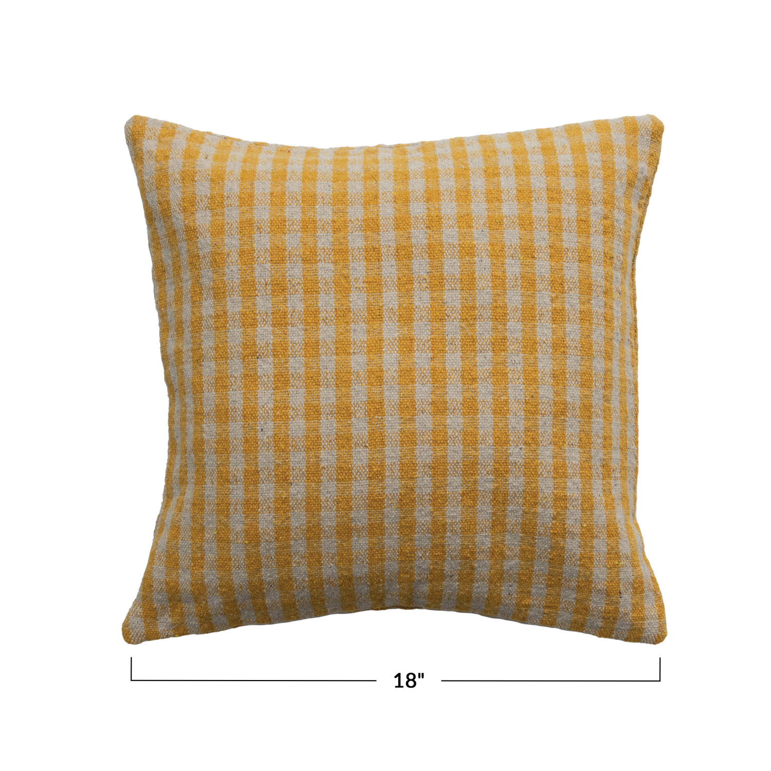 Catalog Name: 18" Square Woven Recycled Cotton Blend Pillow, Mustard Color Gingham