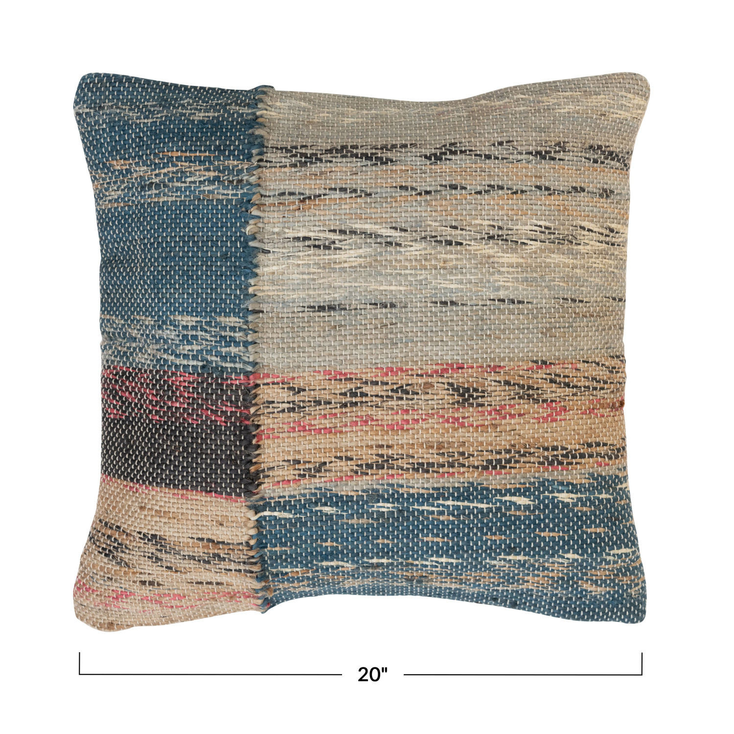 Catalog Name: 20" Square Woven Jute & Cotton Dhurrie Pillow, Multi Color