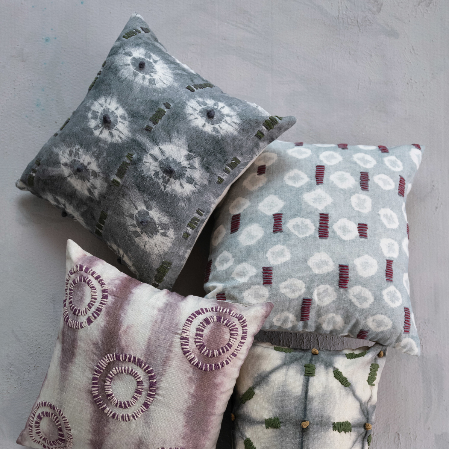 18" Linen Printed Pillow w/ Hand-Embroidery & Chambray Back, Polyester Fill