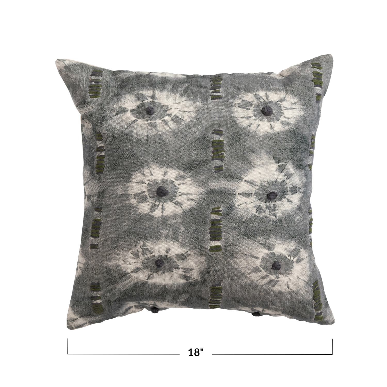 Catalog Name: 18" Square Linen Printed Pillow w/ Hand-Embroidery & Chambray Back, Grey & Cream Color