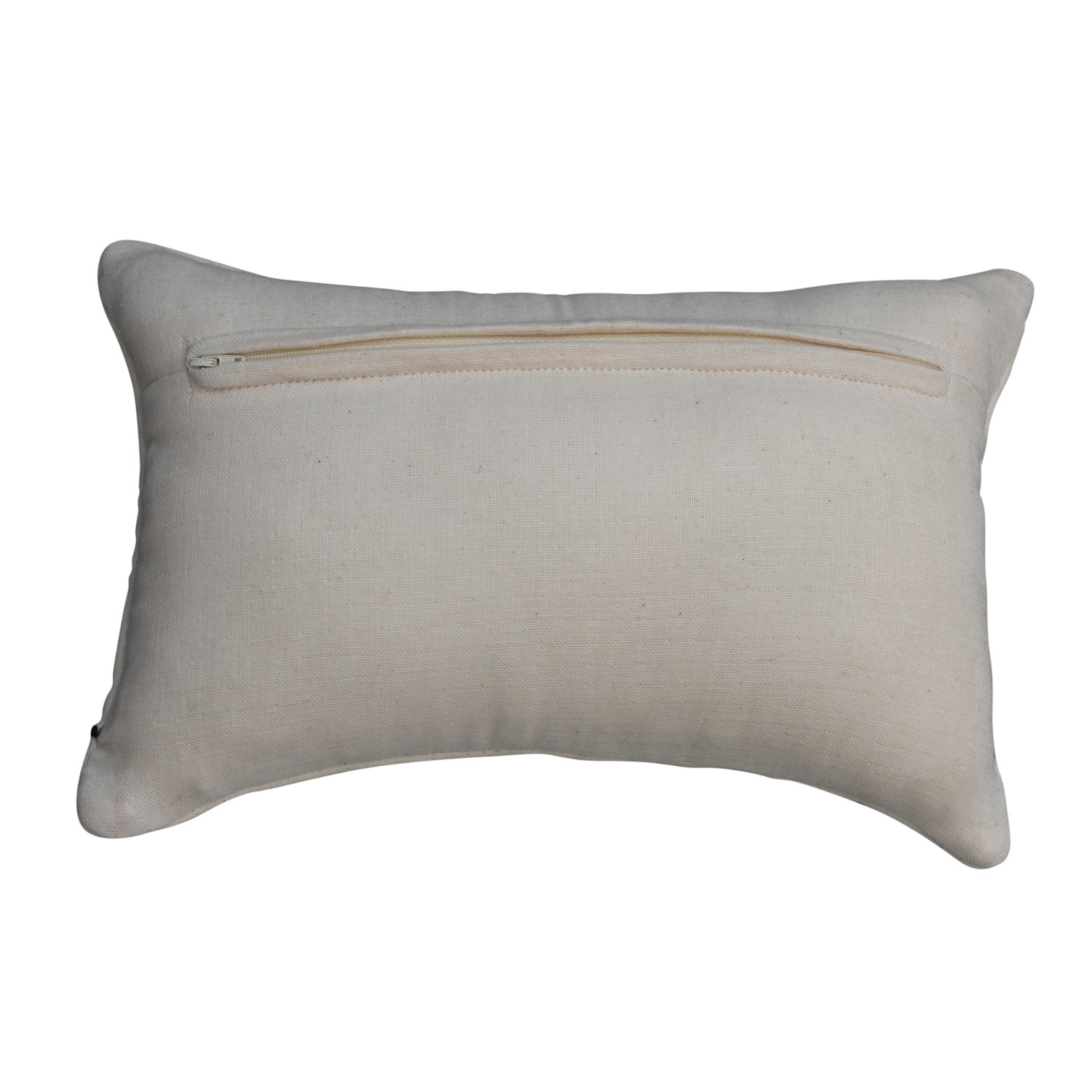 Cotton Lumbar Pillow w/ Hand Embroidery, Natural & Brown