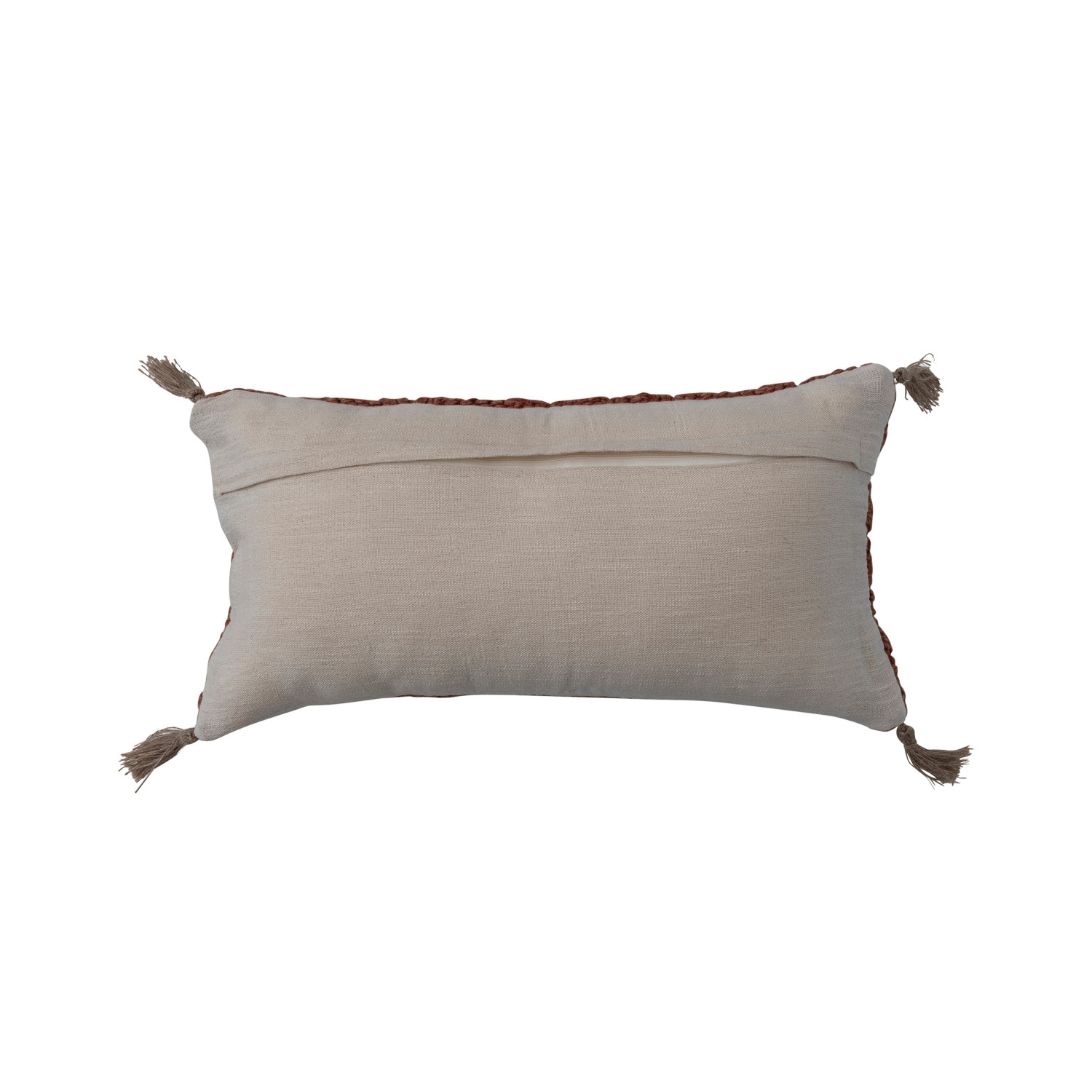 Catalog Name: 24"L x 12"H Woven Cotton Slub Lumbar Pillow w/ Diamond Pattern & Jute Tassels, Rust Color