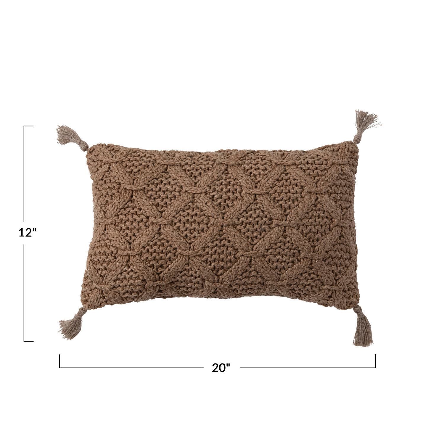Catalog Name: 20"L x 12"H Woven Cotton Slub Lumbar Pillow w/ Diamond Pattern & Jute Tassels, Camel Color
