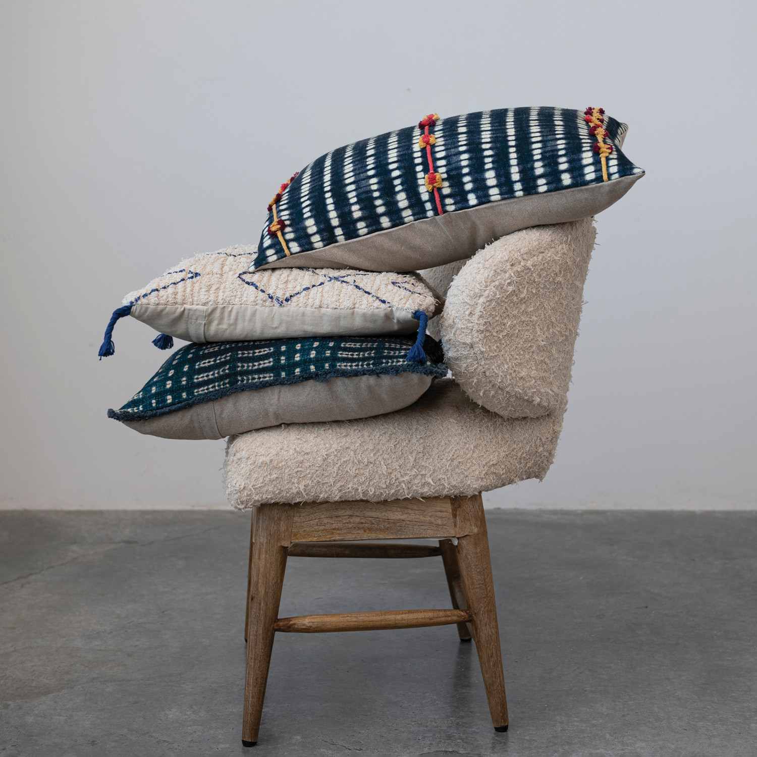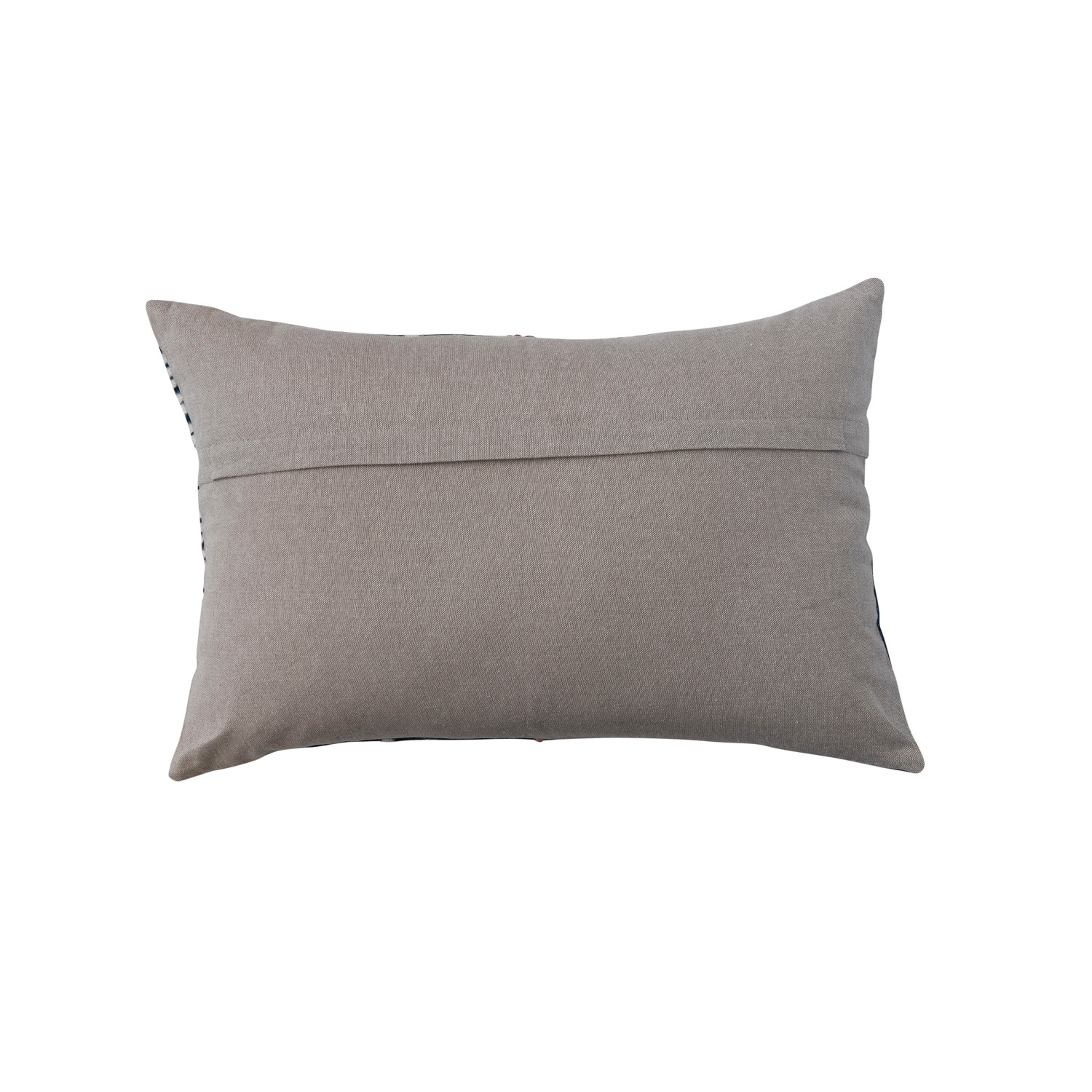 Catalog Name: 24"L x 16"H Cotton Slub Printed Lumbar Pillow w/ Embroidered Lines & Chambray Back, Multi Color