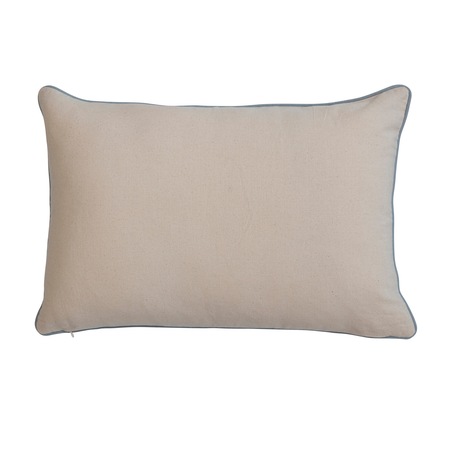 Cotton Lumbar Pillow w/ Embroidered Camper & Piping, Polyester Fill