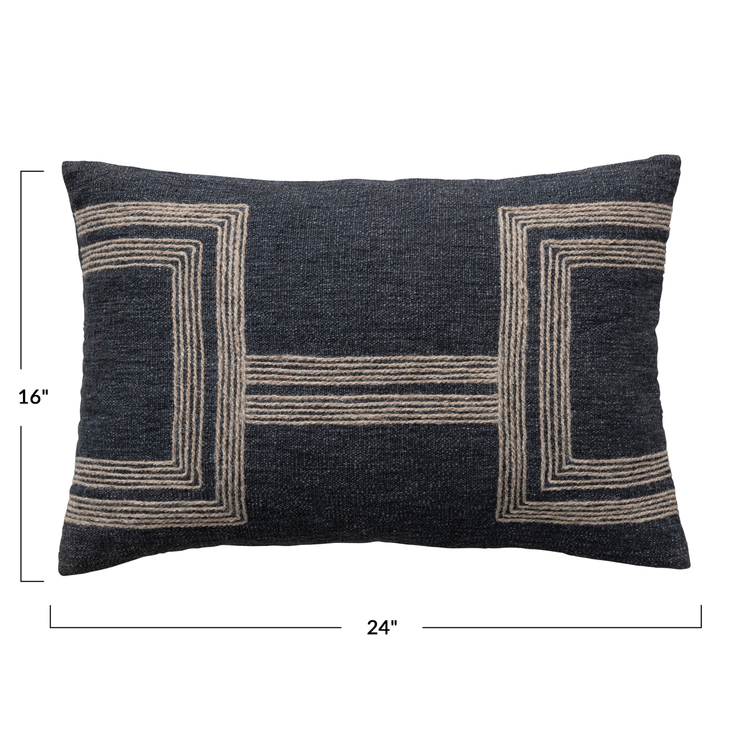 Catalog Name: 24"L x 16"H Cotton Blend Lumbar Pillow w/ Jute Embroidery, Charcoal Color & Natural