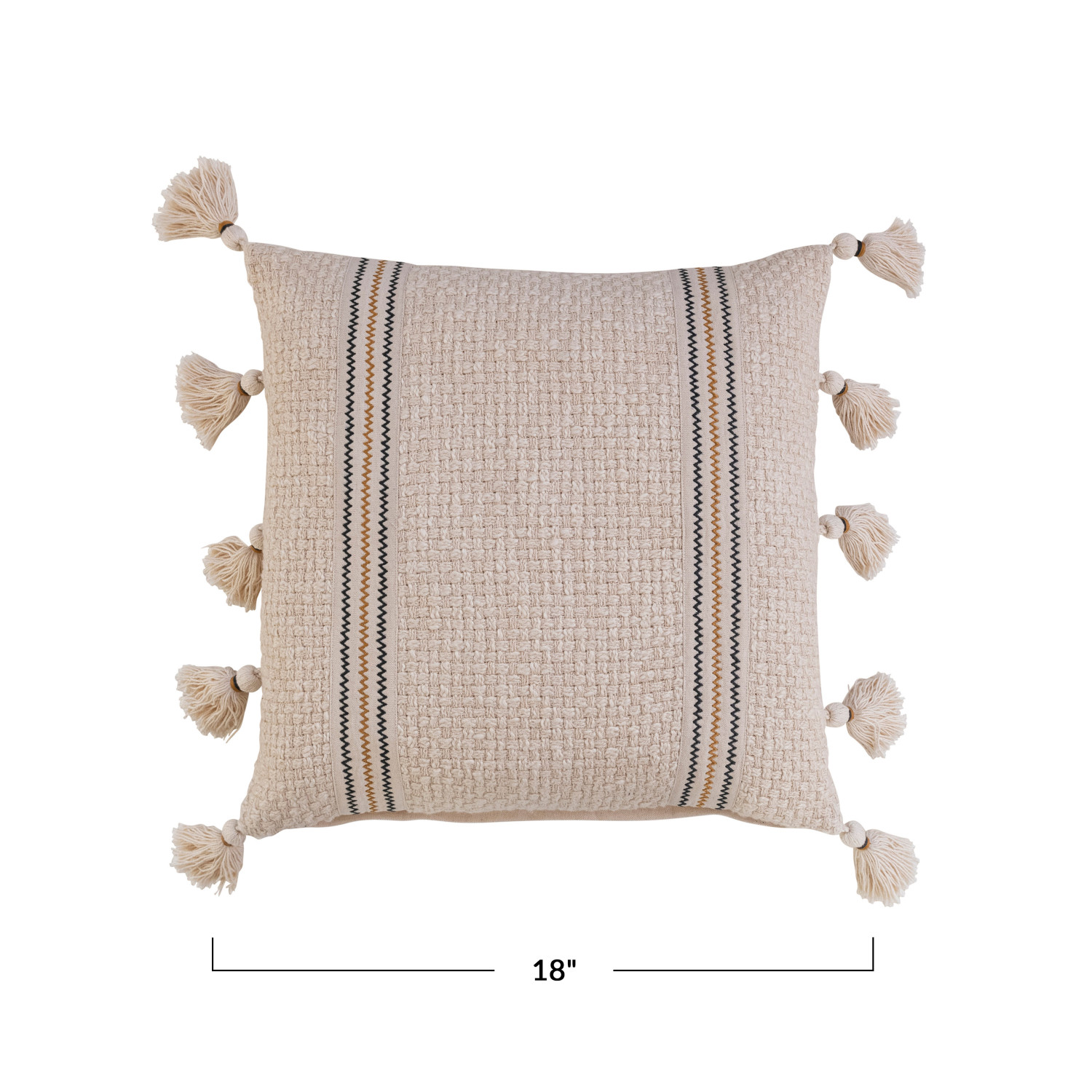 18" Square Woven Cotton Pillow w/ Embroidery & Tassels