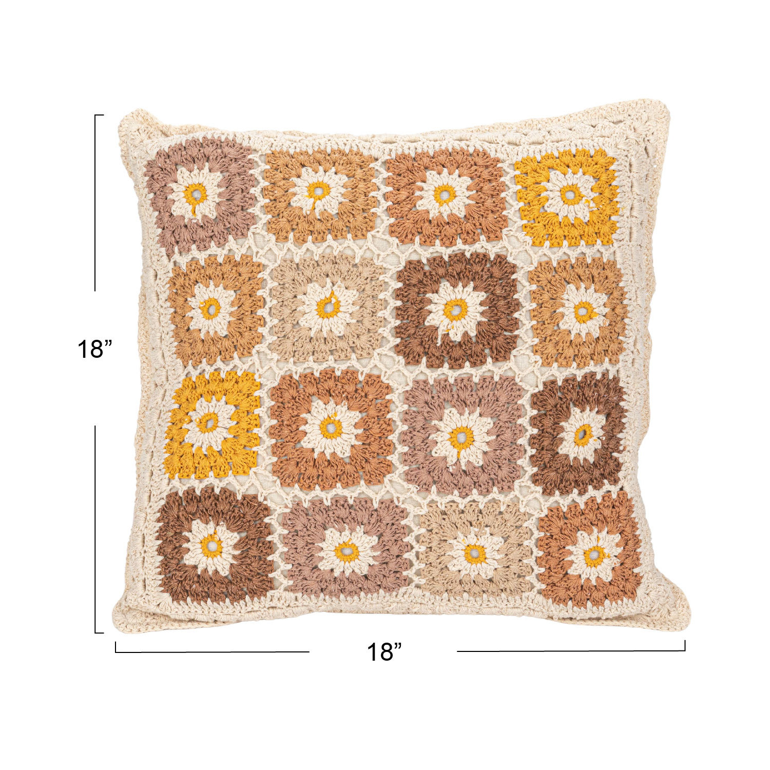 Catalog Name: 18" Square Cotton Crocheted Granny Square Pillow w/ Block Pattern, Multi Color