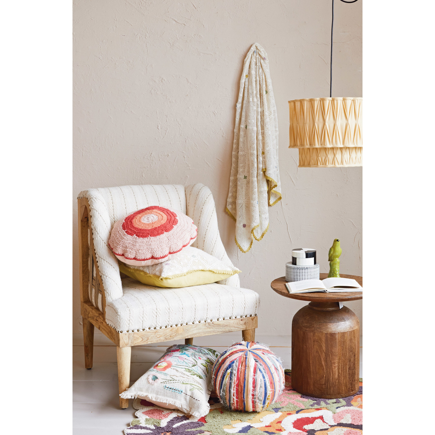 This woven cotton blend orb pillow with ripped fabric stripes, multi color is a fun and cozy addition to any space. It features a vibrant and textured woven cotton blend fabric, a round orb shape with ripped fabric stripes, and a cotton fill for softness and durability. The pillow is made of cotton for the cover and fill, making it easy to care for and spot clean. Measuring 10 inches in diameter, it is perfect for any sofa, chair, or bed. This versatile accessory can add a touch of farmhouse, cottagecore, boho, beach, or cabin style to the space. It is a great choice for creating a cozy and inviting atmosphere or a lively and colorful vibe.