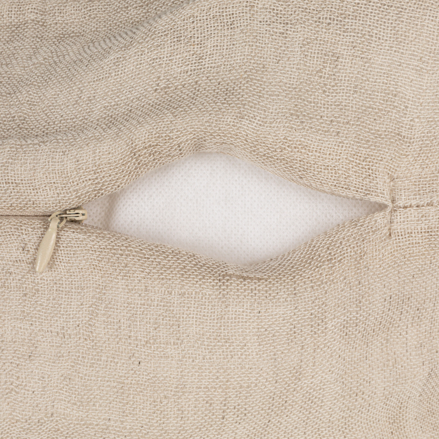 This 18-inch Square Pillow, crafted from a blend of woven cotton and linen, exudes a sense of calm and refinement. The natural color is accented with a subtly patterned edge, making it a versatile piece that complements Scandinavian, farmhouse, or French country decor. The quality materials ensure a soft touch and easy care, while the polyester filling offers ample comfort. Whether it's adorning a couch or dressing up a bed, this pillow is a testament to simple, timeless design. Add a touch of elegance to any room with this stylish and comfortable pillow that effortlessly enhances the overall aesthetic. Its classic design and neutral color make it easy to mix and match with different decor styles for a cohesive look.