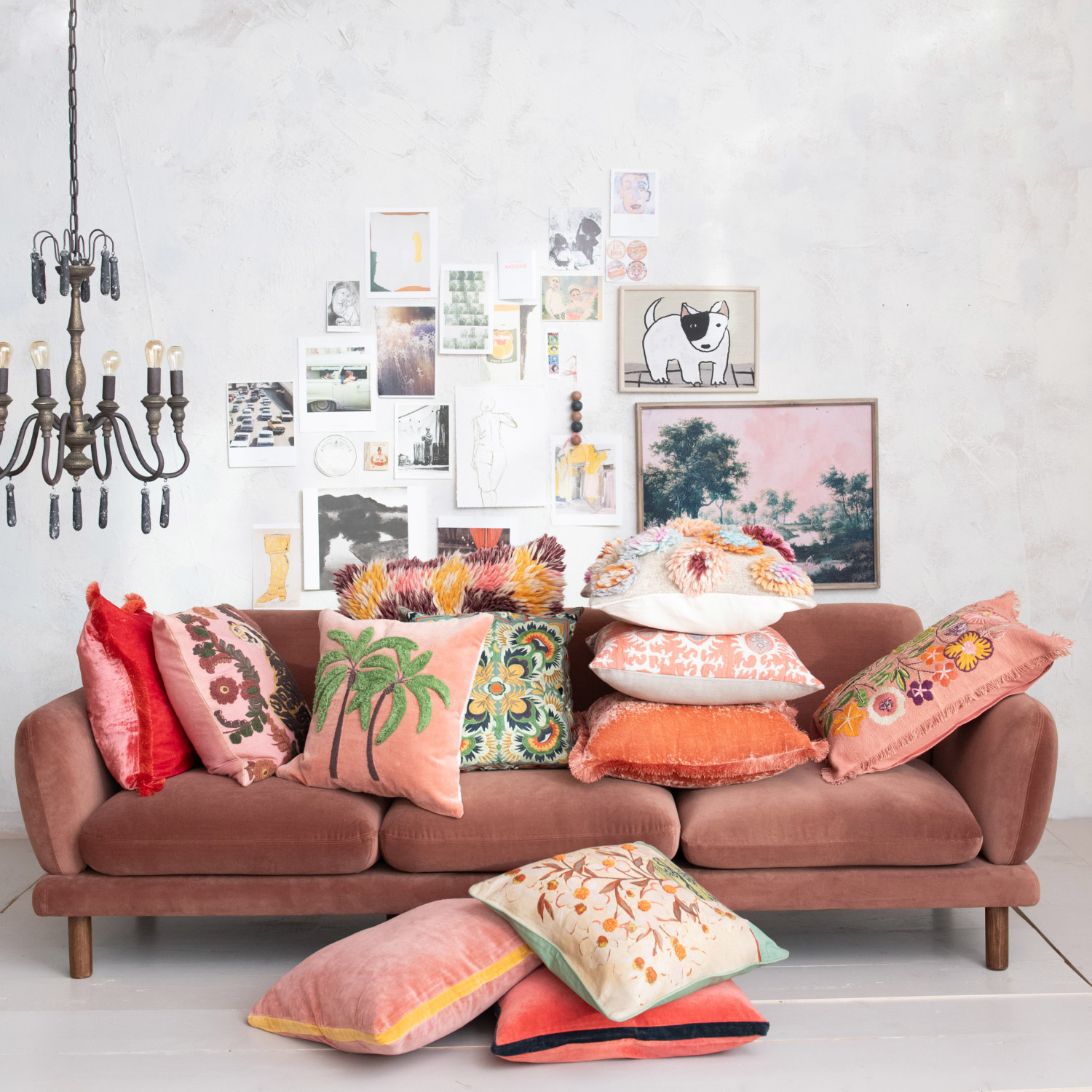 Catalog Name: 20" Square Velvet Pillow w/ Eyelash Fringe, Clay Color