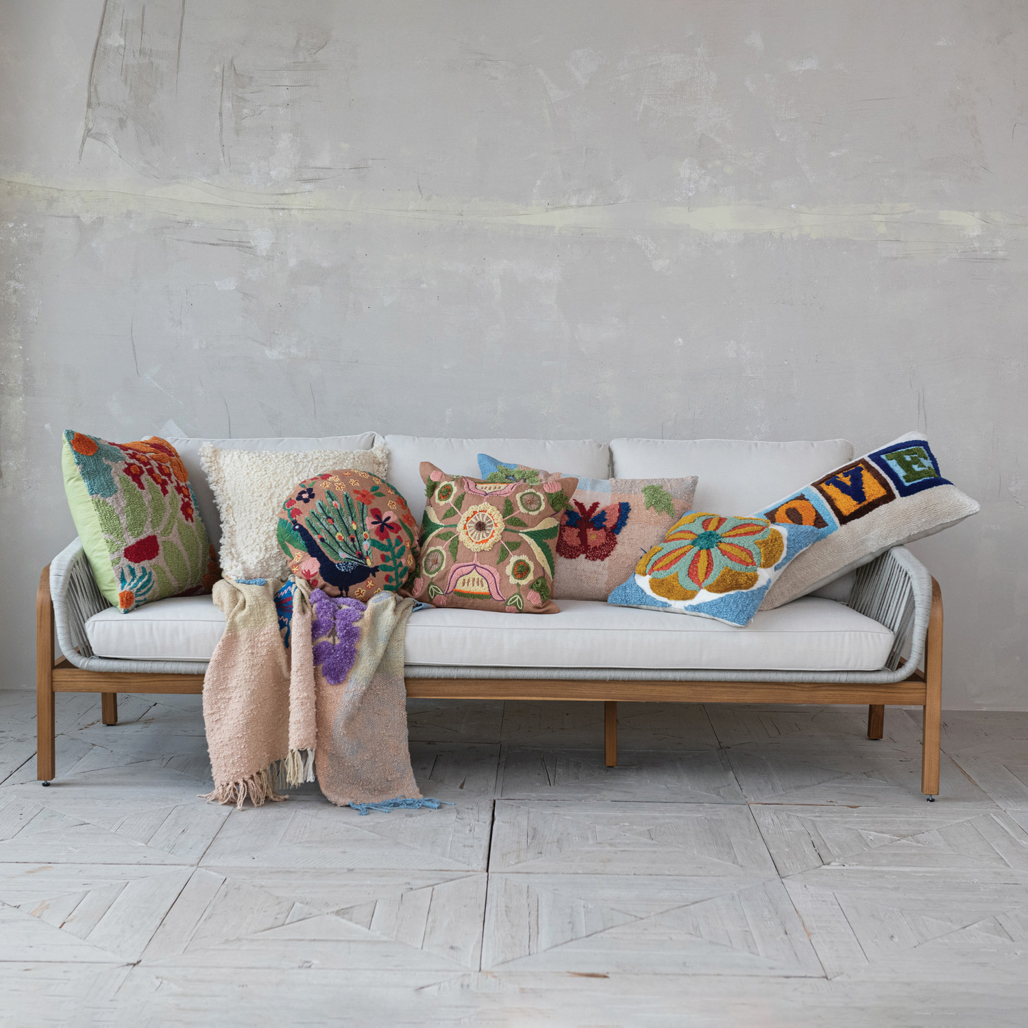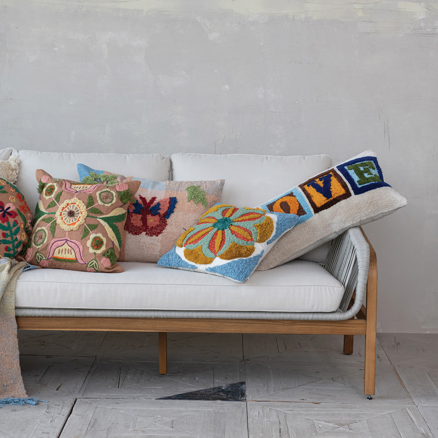 Catalog Name: 16" Square Fabric Tufted Indoor/Outdoor Pillow w/ Flower, Multi Color