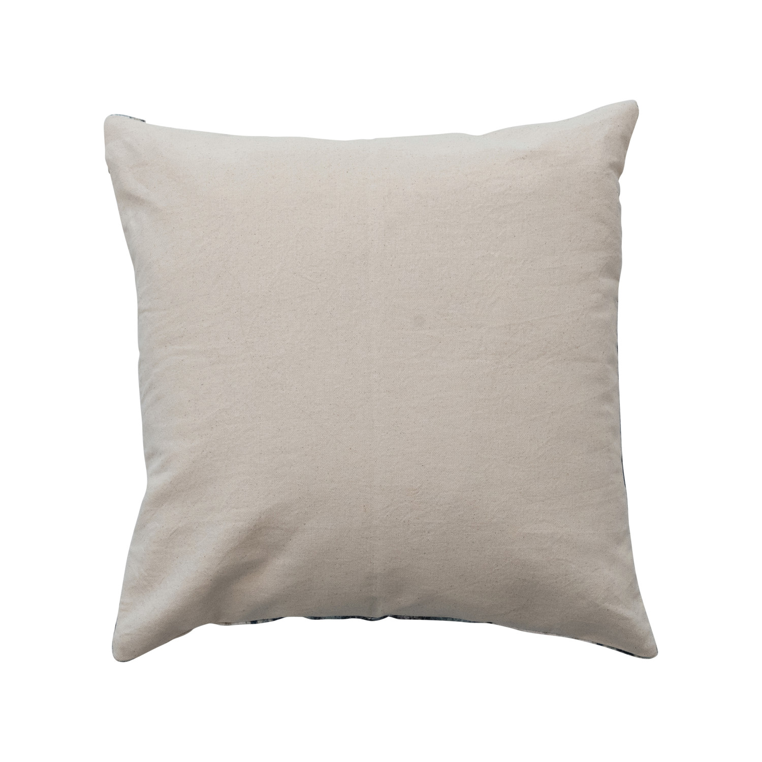 Catalog Name: 18" Square Cotton Blend Velvet Printed Pillow w/ Vintage Carpet Pattern, Cream Color & Blue