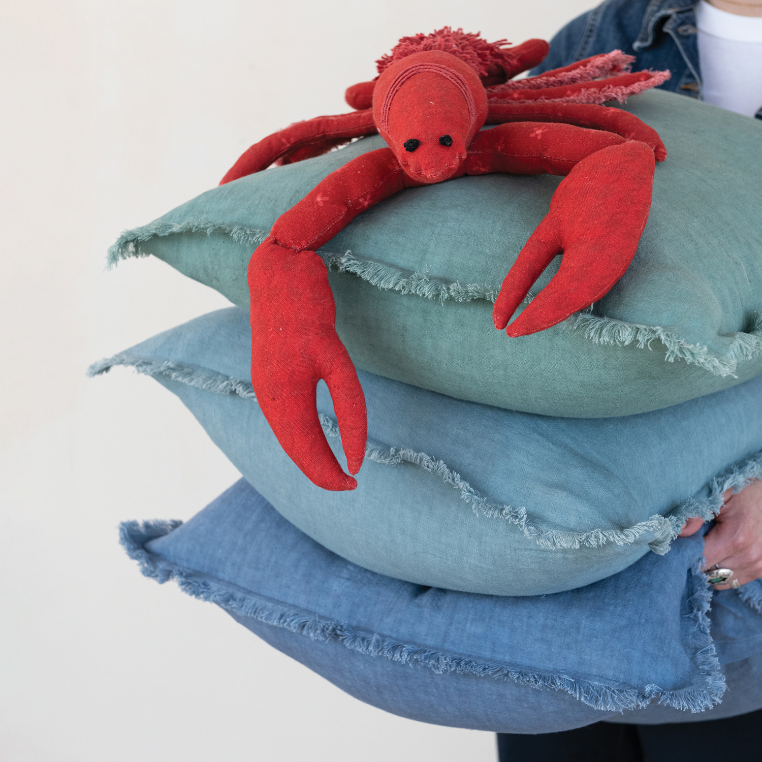 Catalog Name: 20" Square Stonewashed Linen Pillow w/ Fringe, 3 Colors