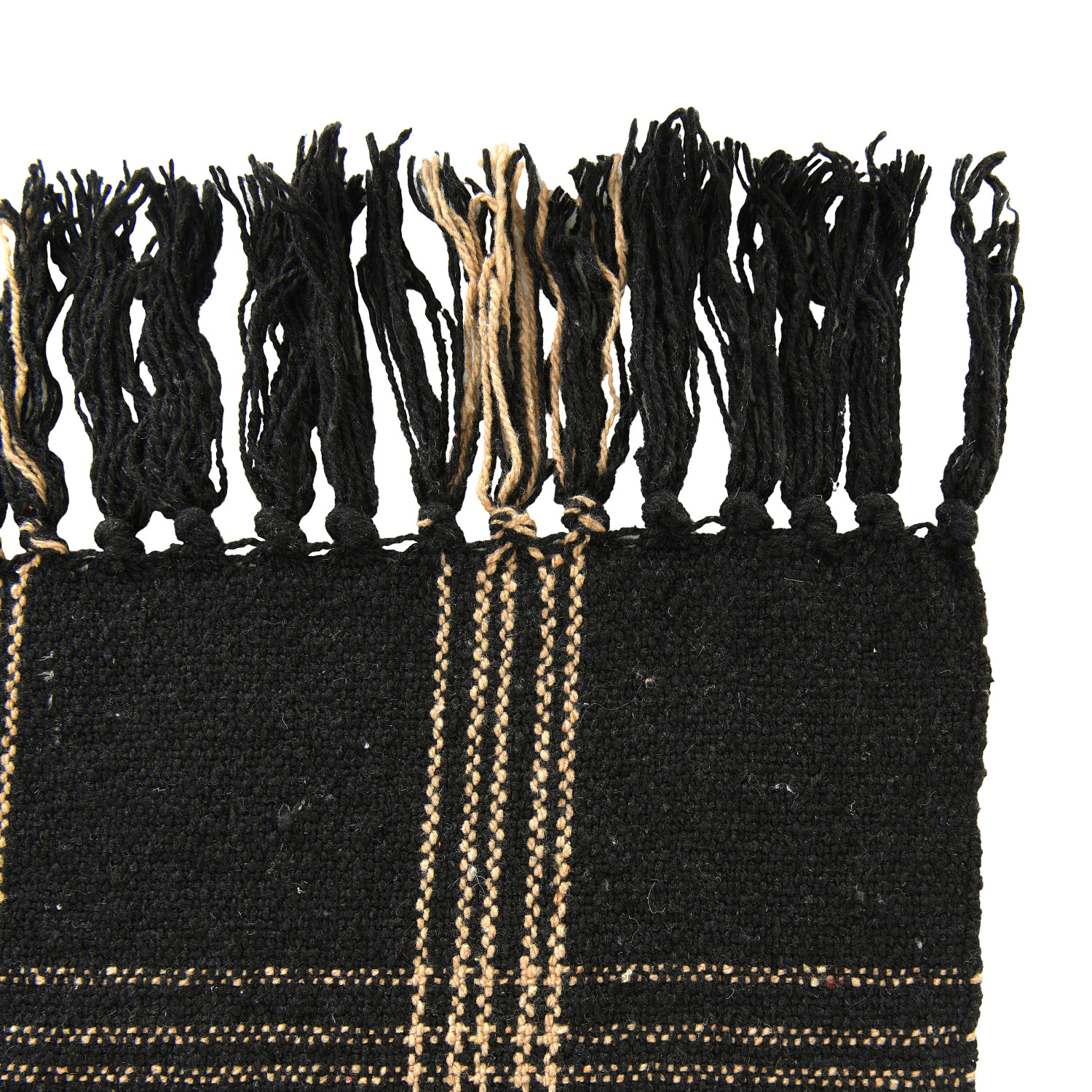 Catalog Name: 60"L x 50"W Woven Recycled Cotton Blend Throw w/ Fringe, Black & Tan Color Plaid