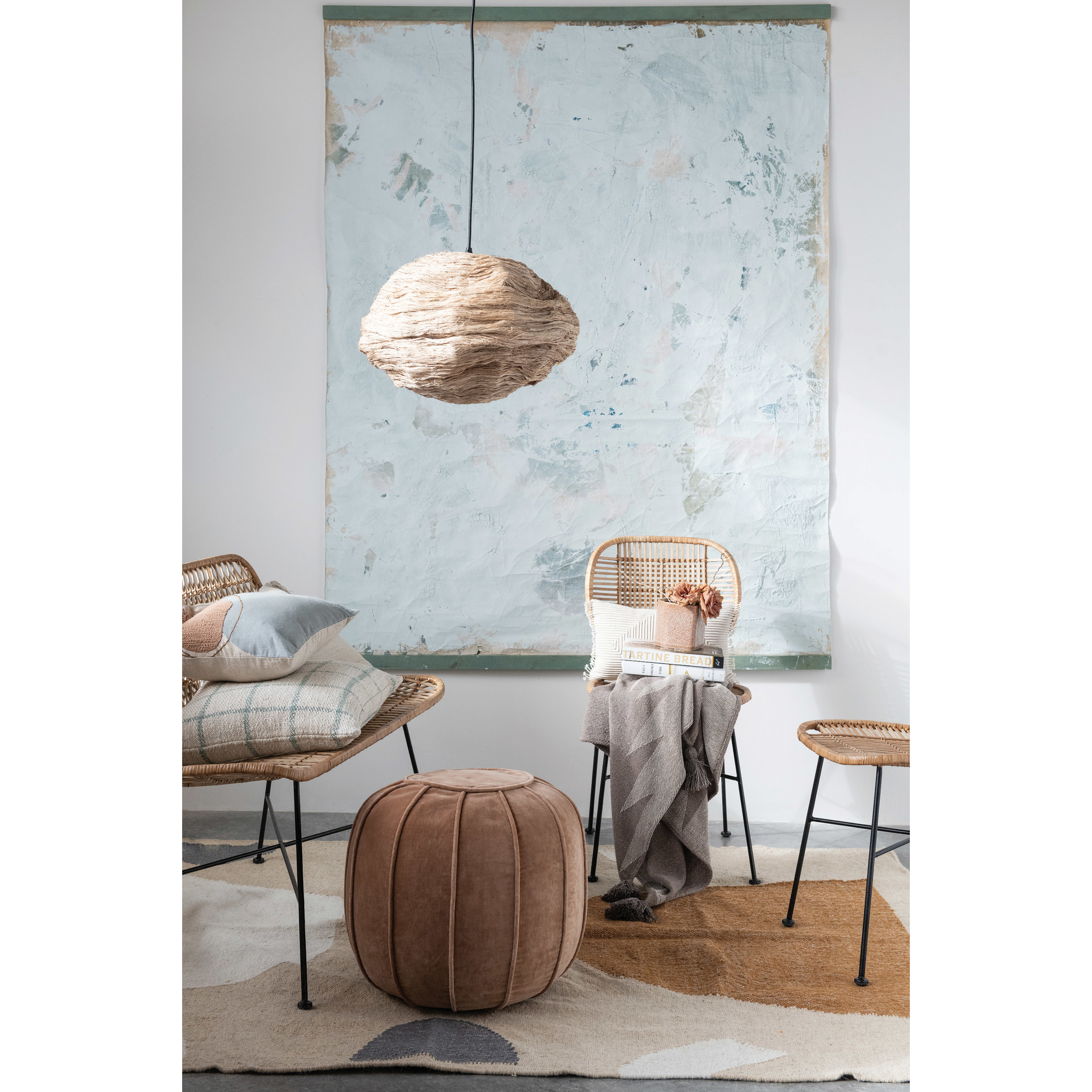 This unique rug to ties together a room's decor, using colors and patterns found within the story of the rug. This rug will work in any room effortlessly adding warmth and comfort. 70% Jute, 30% Cotton. 5' x 8'. Spot Clean Only.