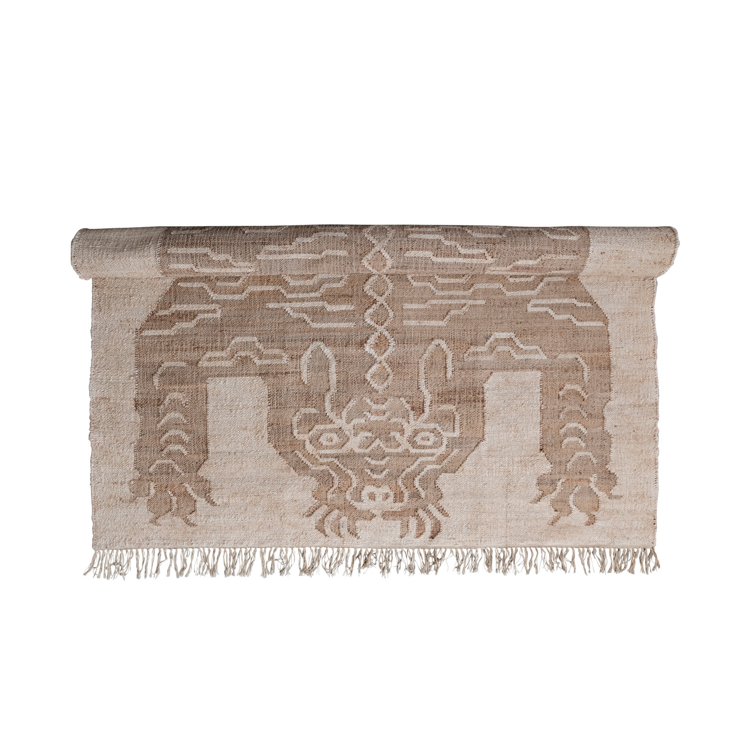 Our thoughtfully curated collection of rugs showcases a wide array of lush woven textures, prints, embroidery, and silhouettes to instantly transform any space. Explore a wide variety of pieces to bring warmth to any space including doormats, patchwork, dhurrie rugs, circle rugs, tufted area rugs, floor runner rugs, and so much more. Choose from vast selection of materials from pieced leather and jute to handwoven cotton and wool, and styles from mid-century modern and global to contemporary boho and traditional farmhouse. Effortlessly bring depth, warmth, and texture to a living space with a thoughtfully placed rug that is sure to impress. This eclectic floor rug showcases masterfully handwoven cotton and jute with a bold dragon design and decorative fringe. Display in a living or dining space of any style from boho to global. Spot Clean Only. Made from jute and cotton.