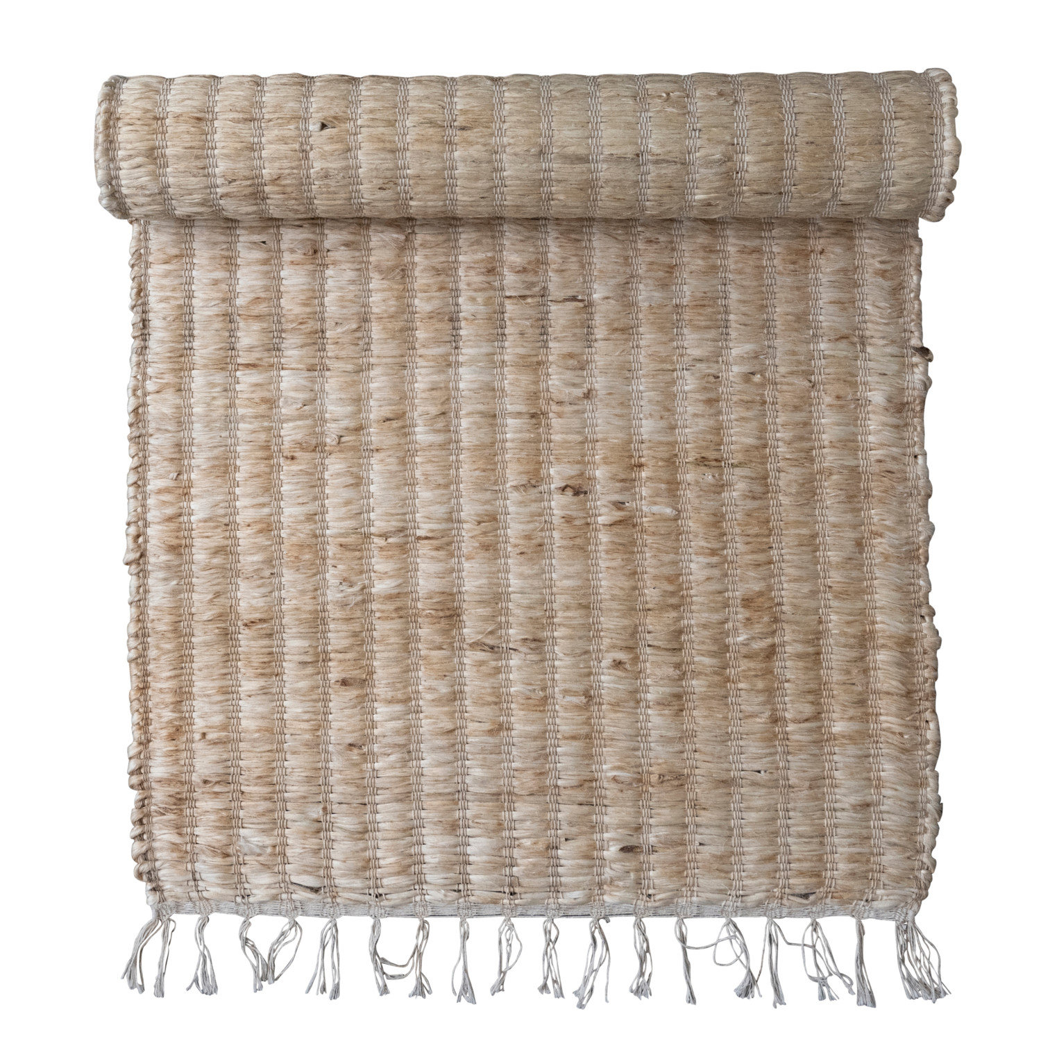 Woven Bleached Jute & Cotton Floor Runner w/ Fringe, Natural