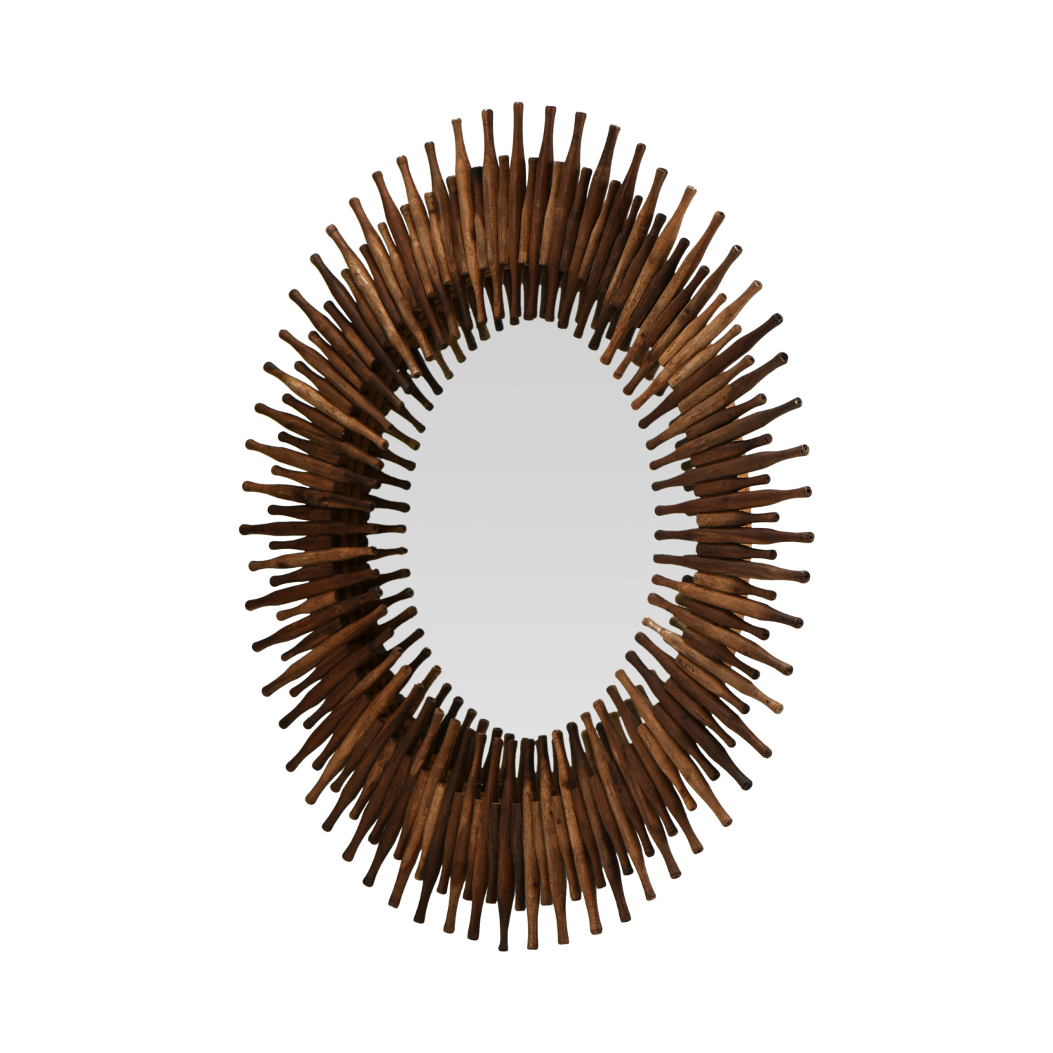 Catalog Name: Approximately 48" Round Found & Repurposed Wood Roti Pins Wall Mirror, Truck Ship (Each One Will Vary)