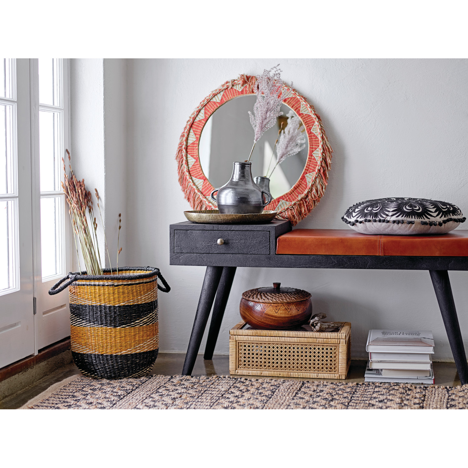 Add this round mirror with embroidered frame to the room decor for a fun and youthful accent. Pair it with other embroidered wall decor and add rust color candles nearby. The earth tones and embroidered designs will create a warm and cozy atmosphere.