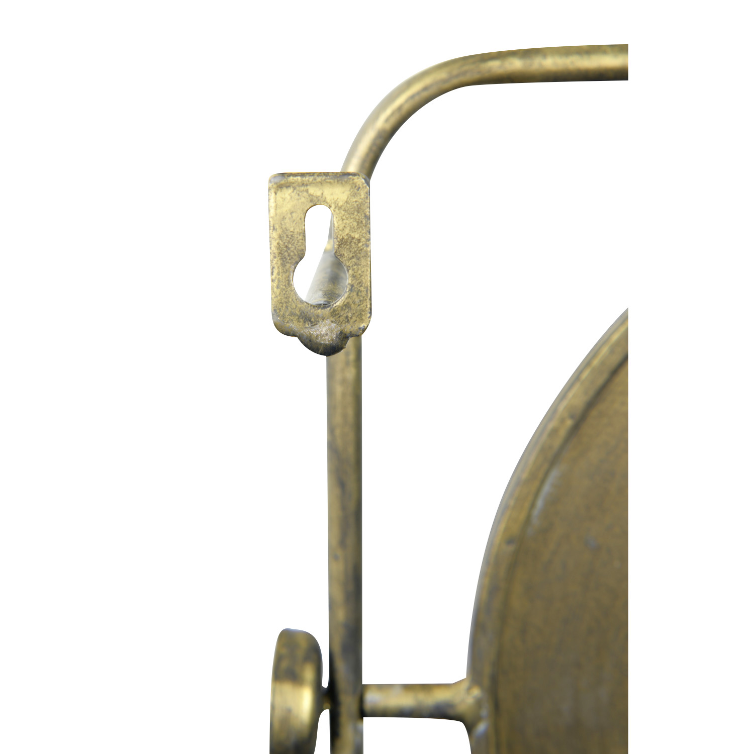 This vintage-inspired oval mirror has an antique gold finish that is reminiscent of years past. Display it in the bathroom with toiletries securely placed on the attached shelf. Hang a decorative towel on the bottom rod for a complete and unique wall decor.