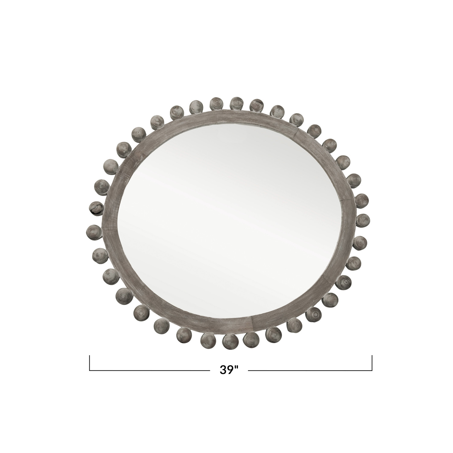 Catalog Name: 39" Round Mango Wood Ball Framed Wall Mirror, Blackwashed, Truck Ship