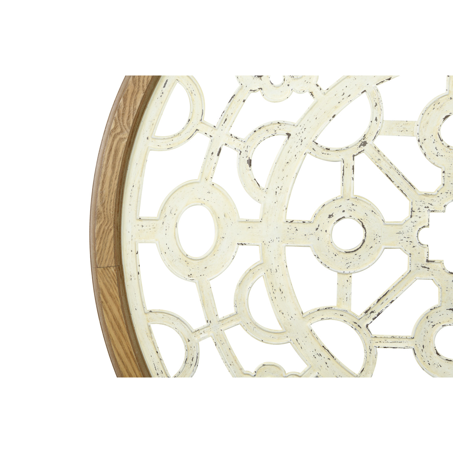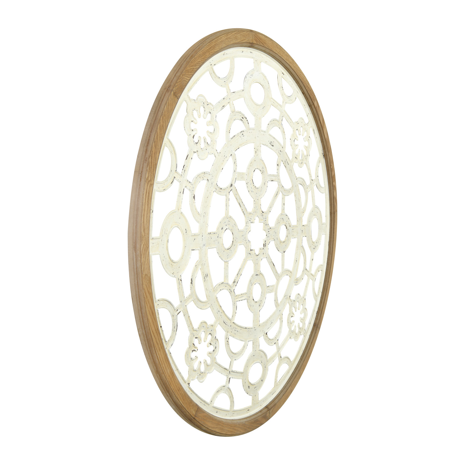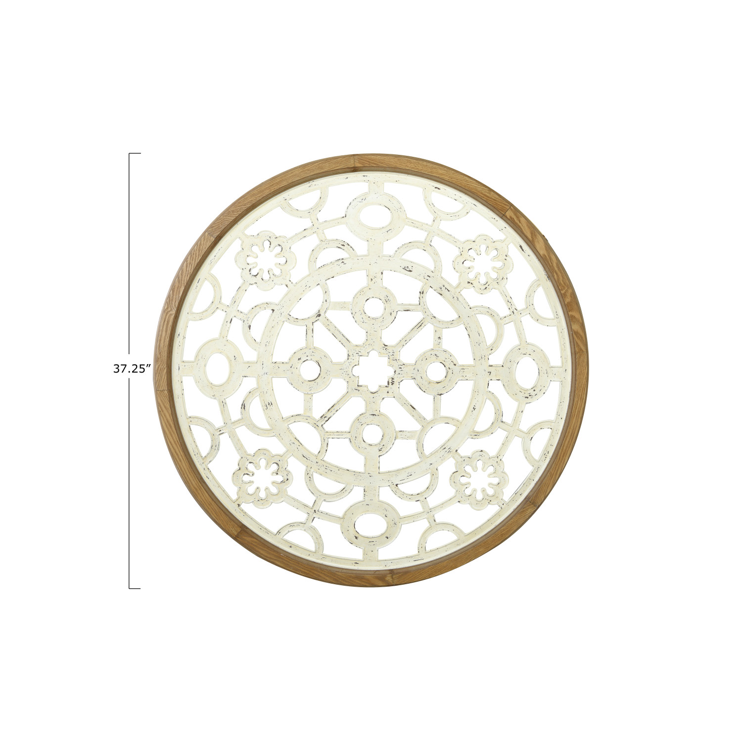 This large wood and metal decorative piece will be the centerpiece of the room decor. The open design will allow it to blend beautifully with the wall color as it shows through each cutout. Pair with a selection of metal white tole flowers or figurines.
