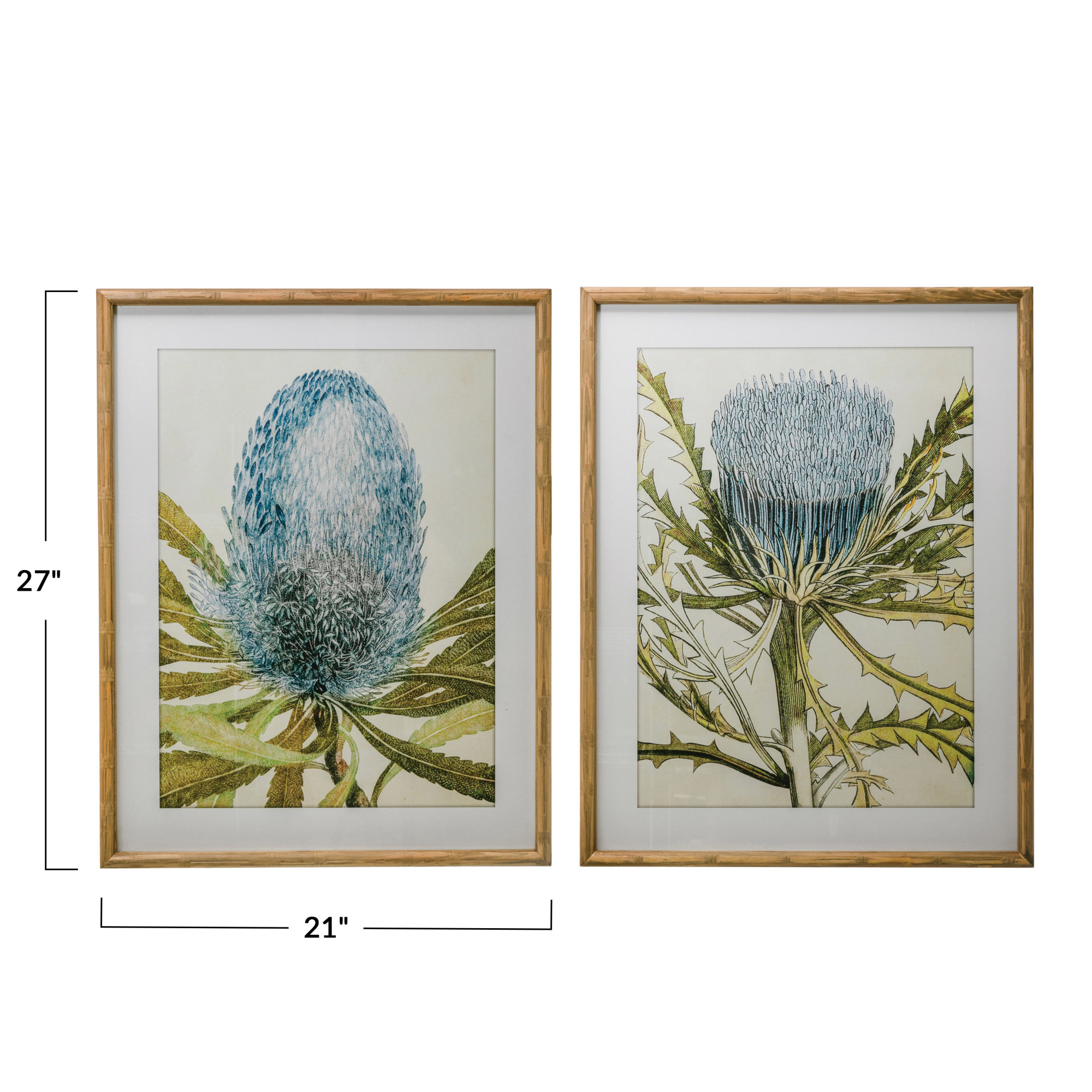 These floral wood-framed wall decor pieces are an elegant and eclectic way to decorate the walls. They are made of wood, glass, and paper. They have a medium finish wood frame that contrasts with multicolored art. The art features different styles of flowers with vivid colors and artistic details. They have a glass cover that protects the art from dust and damage. They have an integrated sawtooth hanging mechanism that hangs them vertically. Hang them separately or with complementary pieces for a stunning display. They suit any home decor style, especially if one loves a boho, eclectic, or farmhouse look. They bring some vibrancy and charm to any room in the home or office. These wall decor pieces are a fun and unique way to add a touch of nature to the home. Comes in 2 styles.