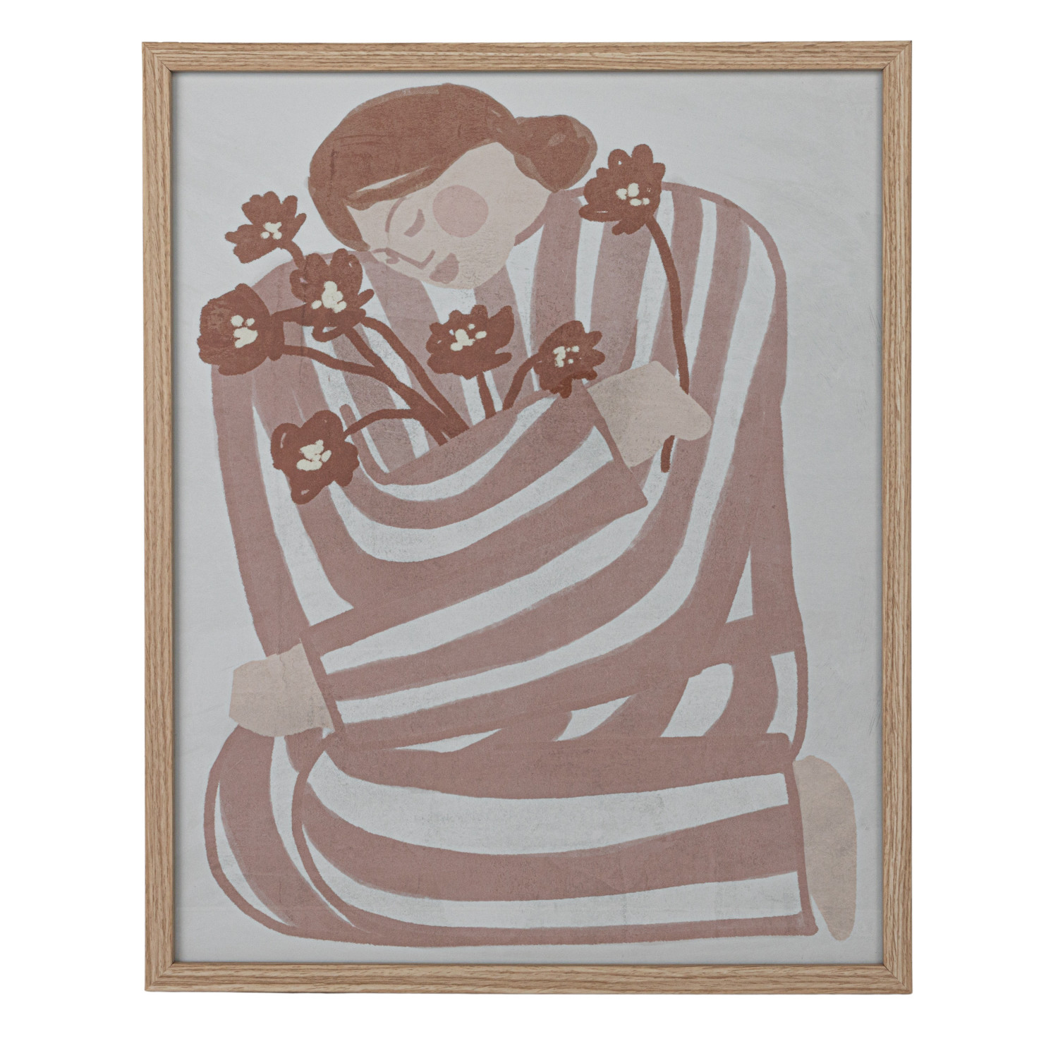 MDF Framed Glass Wall Décor w/ Woman Holding Flowers
