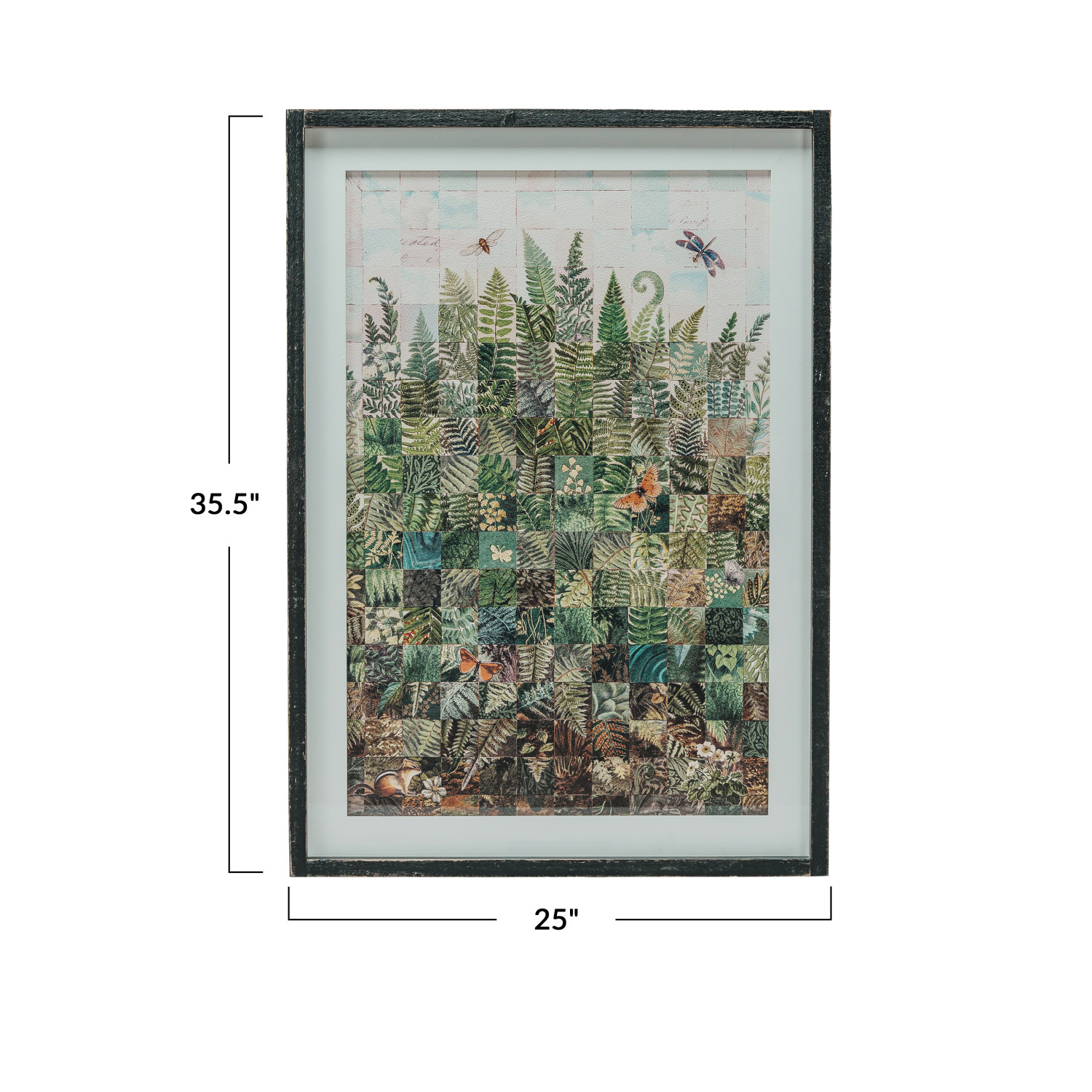 This Wood Framed Glass Wall Décor with Fern Fronds Print is a celebration of the natural world. The multi-colored ferns are rendered in exquisite detail, set against a backdrop that highlights their delicate forms. The rectangular frame is crafted from wood, complementing the organic subject matter, while the glass protects and enhances the vibrancy of the print. It measures 25 inches W x 35.5 inches H, offering an expansive view of the fern print that becomes a statement piece in any space. Whether hung in a garden-themed room or as part of a minimalist Scandinavian design, this piece adds a touch of elegance and a breath of fresh air to the decor.