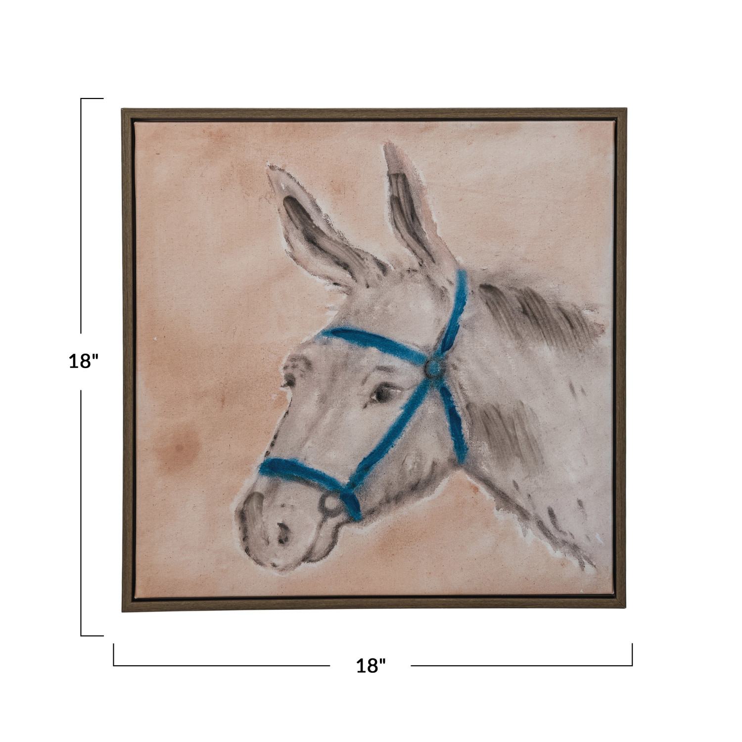 Catalog Name: 18" Square Hand-Painted Wood Framed Wall Décor w/ Donkey, Multi Color