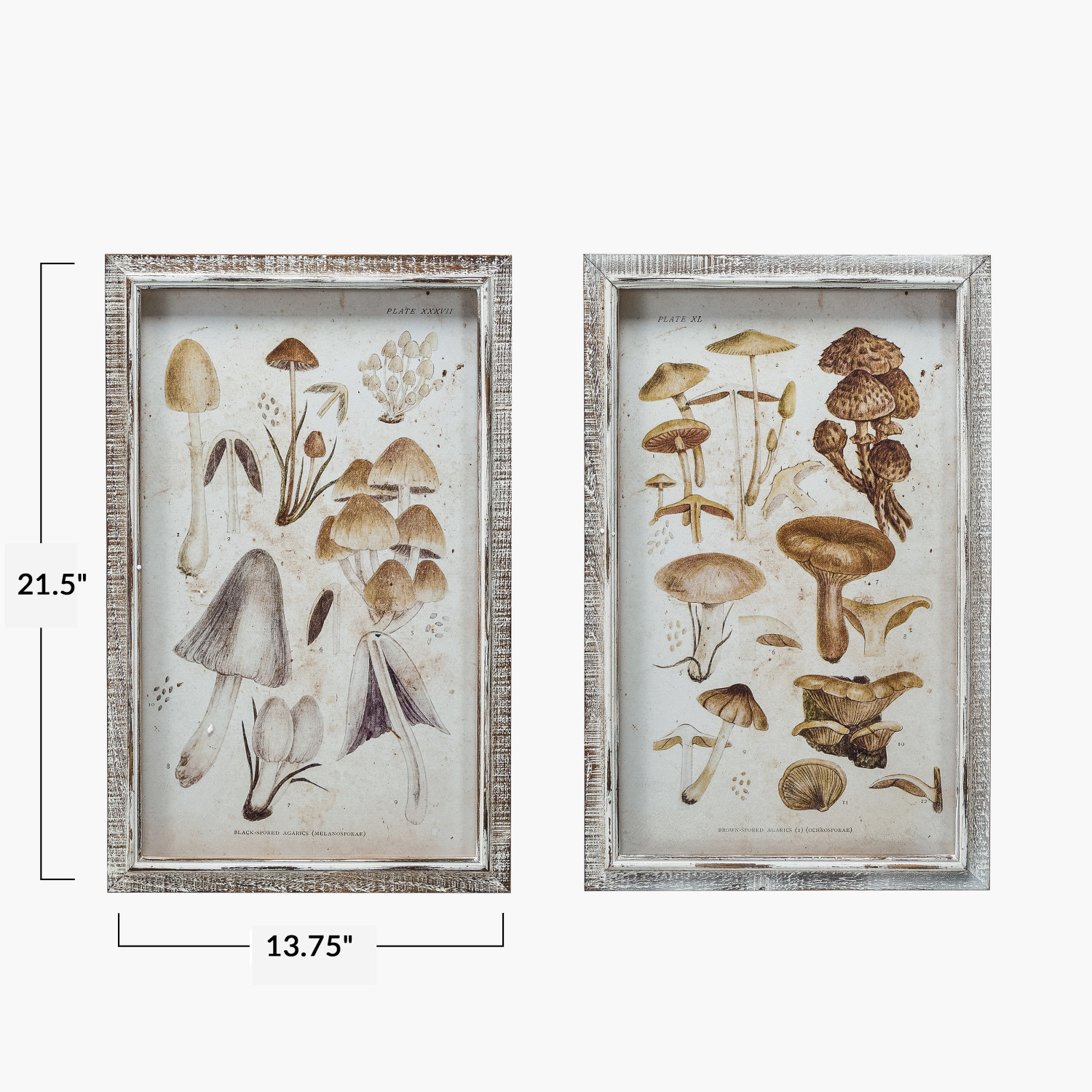 Wood Framed Glass Wall Décor w/ Mushrooms Print, 2 Styles