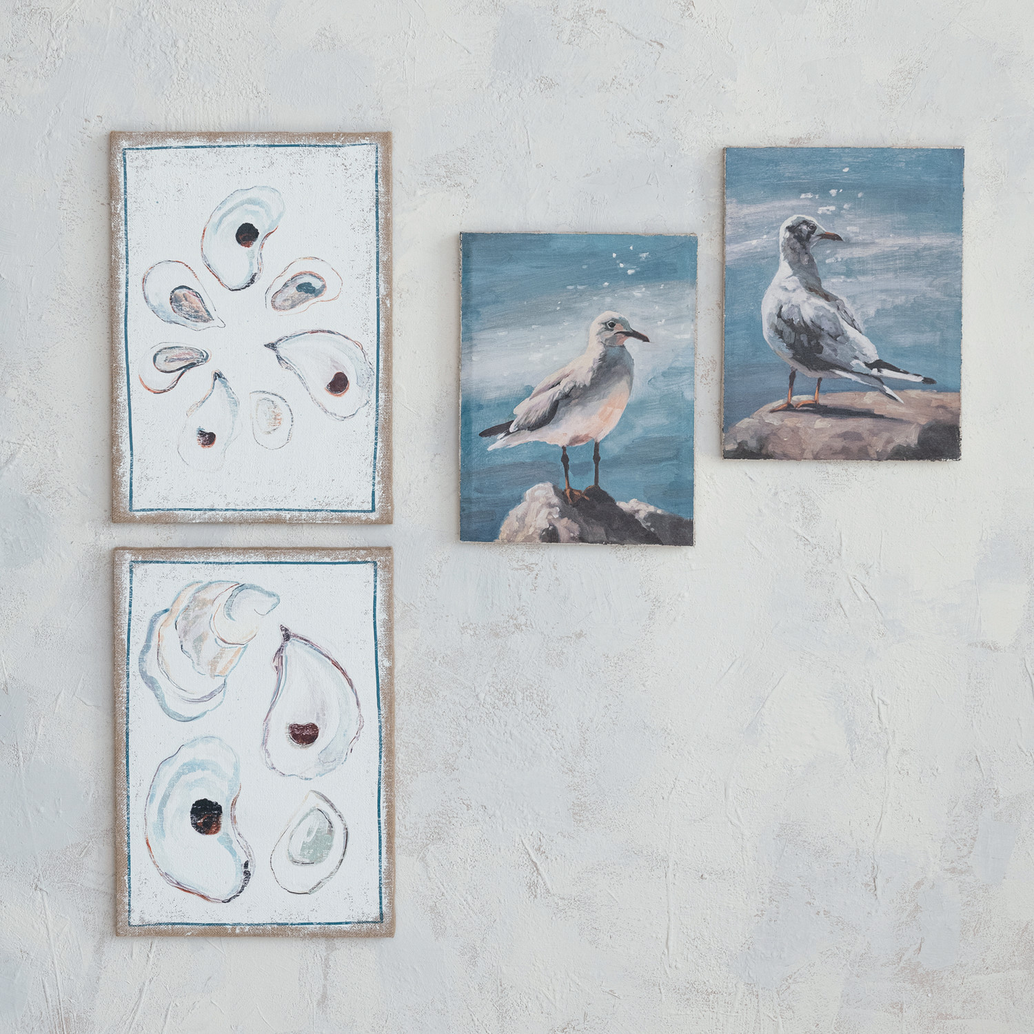 Plastered Burlap Wall Décor w/ Oyster Print, Distressed Finish, 2 Styles ©