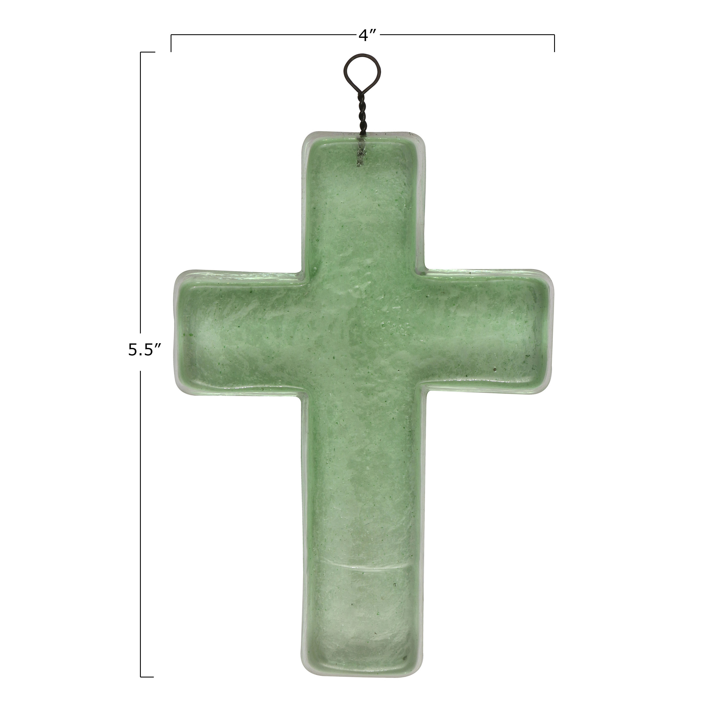 Catalog Name: 4"L x 5-3/4"H Hanging Recycled Glass Cross, Green