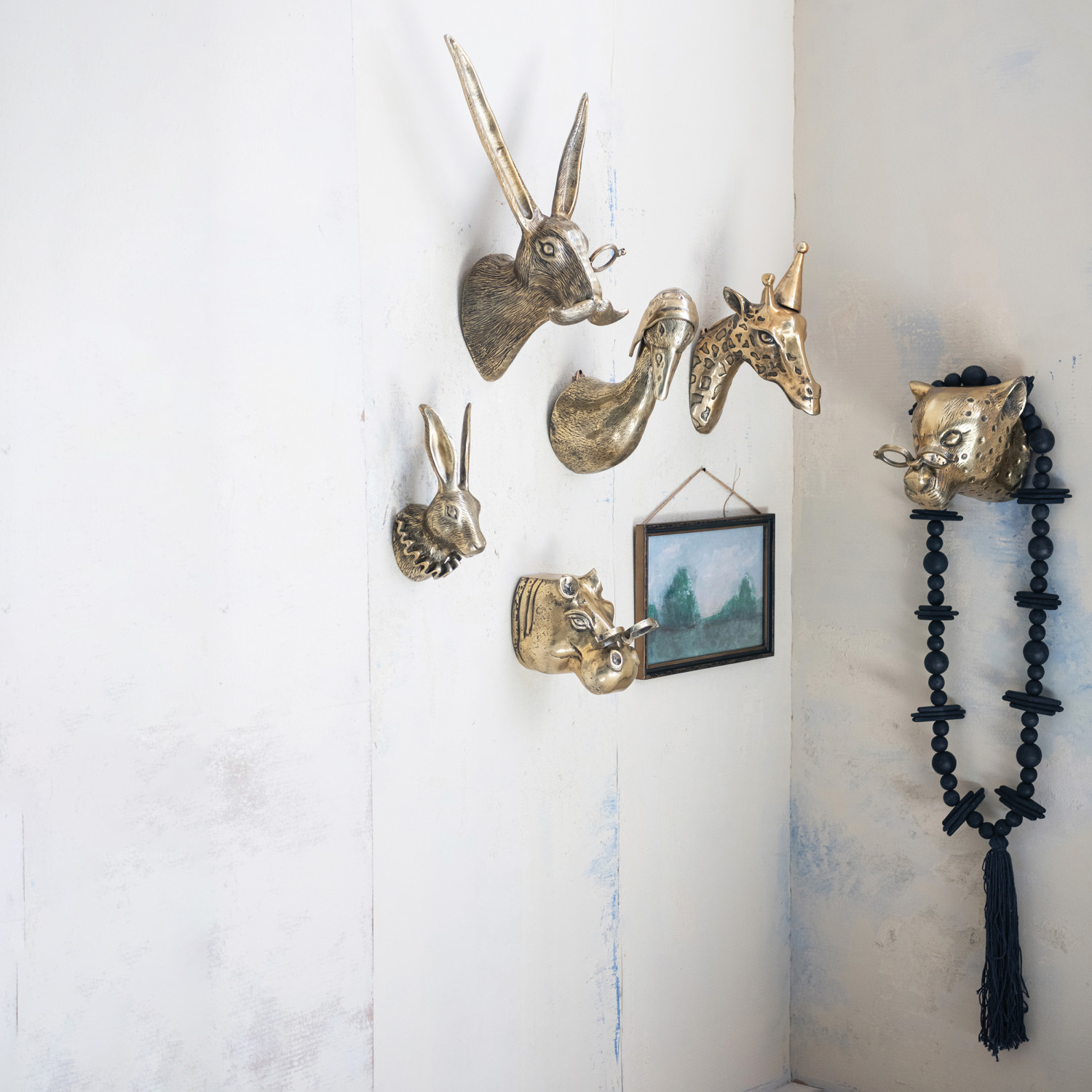 Cast Aluminum Rabbit Head with Ruff Collar Wall Décor