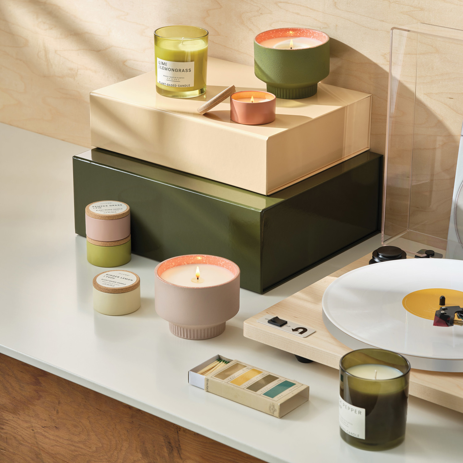 Inhale a fresh start inspired by the earthy green of the growing garden. Steeped in a Cali-cool vibe, these simple designs pair with a hint of retro throwback. A simple but sweet solid color jar lidded with a matte gold, embossed lid. This scent features a fresh spritz of lemon-lime, rose, and soothing green tea. Plant-based soy blend candle poured in the USA. Thoughtfully designed from wax to wick, our candles add warmth and ambiance to any interior design scheme. Burns up to 30 hours; 1 wick.