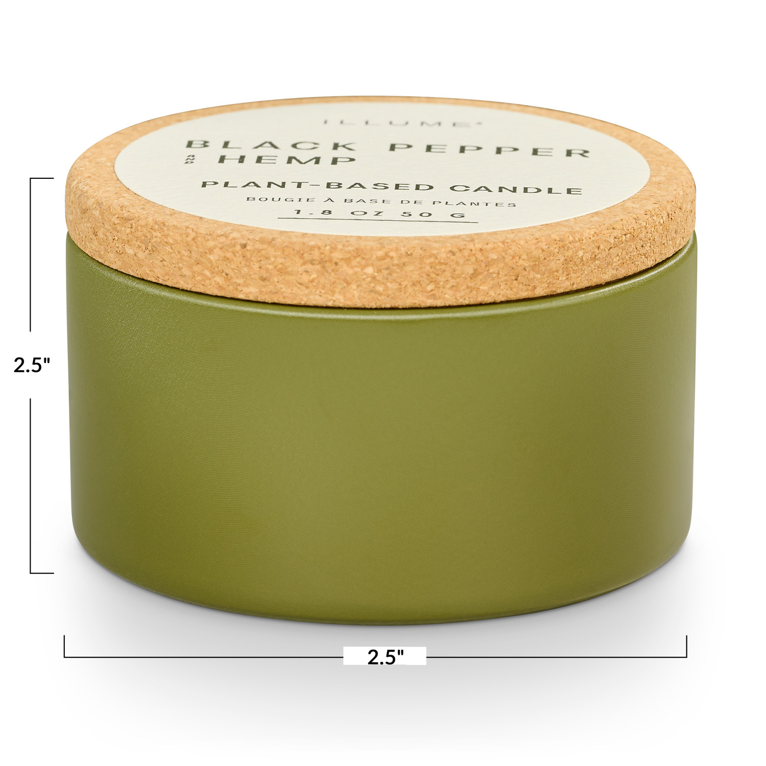 Inhale a fresh start inspired by the earthy green of the growing garden. Steeped in a Cali-cool vibe, these simple designs pair with a hint of retro throwback. With a natural cork lid and soothing matte color palette, these petite tins fit into any space. This scent features a spicy bend of pepper, patchouli, and warm amber. Plant-based soy blend candle poured in the USA. Thoughtfully designed from wax to wick, our candles add warmth and ambiance to any interior design scheme. Burns up to 10 hours; 1 wick.